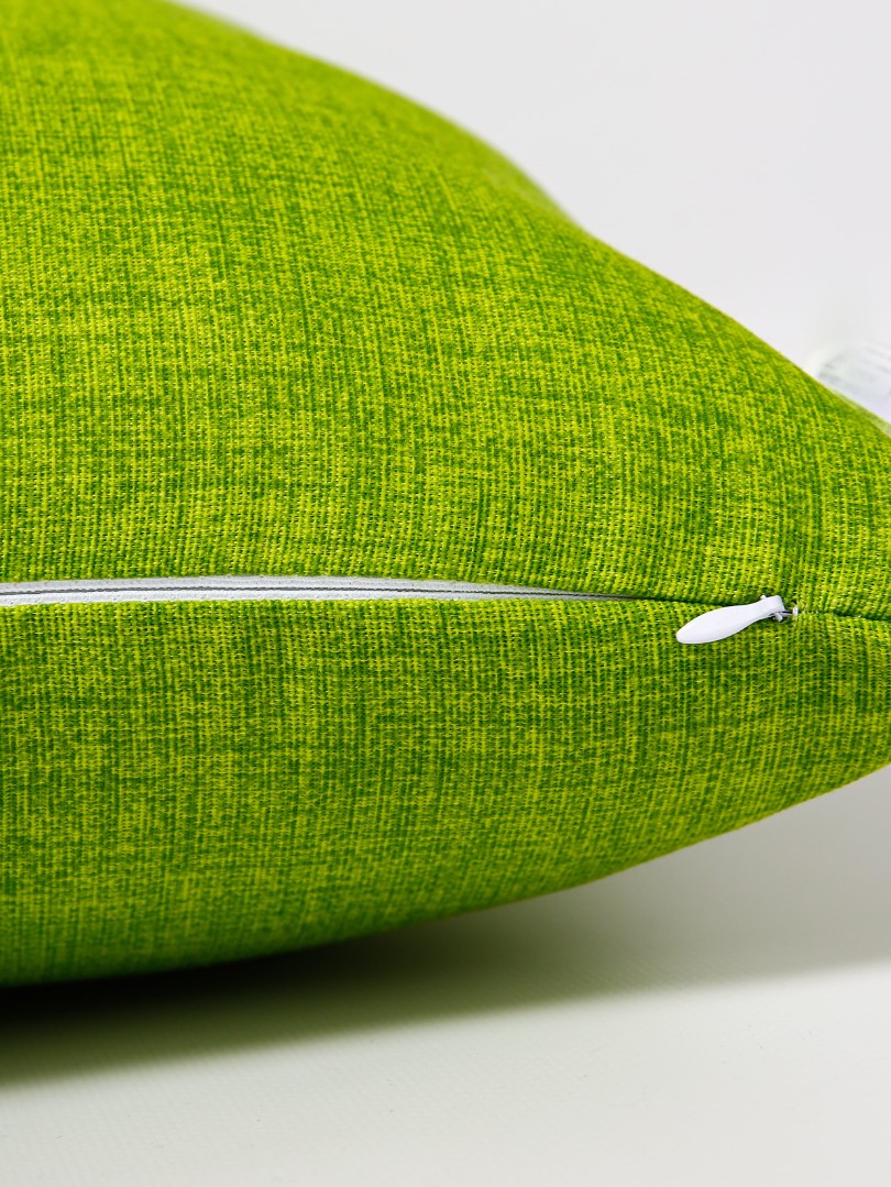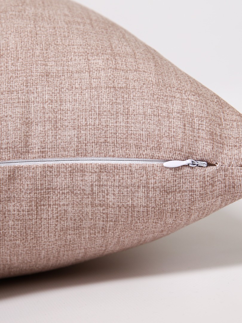 Декоративная подушка отшивается из однотонной (контрастной) ткани различных оттенков, ткань Декоративной подушки напоминает структуру льна и застёгивается на молнии.