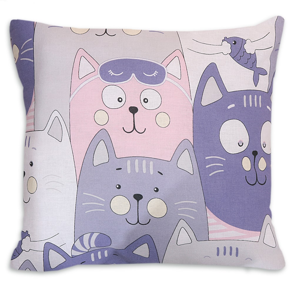 Подушка Кити. Подушка просто усыпана милыми котятами и уж точно не оставит вас равнодушным в таком исполнении. Как думаете, получится ли у вас сосчитать всех веселых котиков на фактуре ткани?