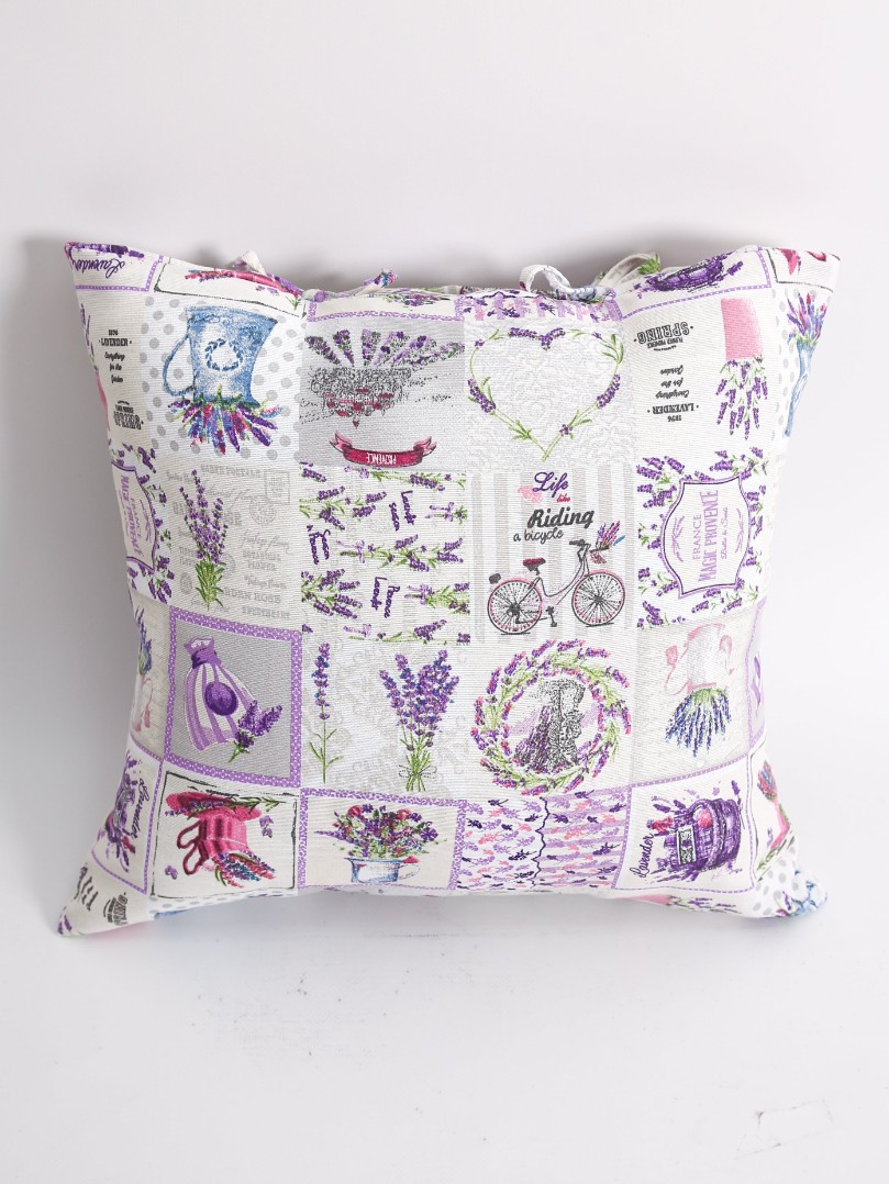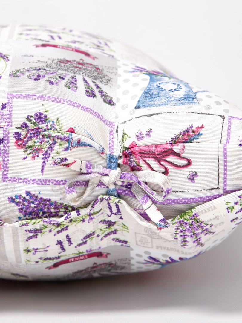 В качестве наполнителя декоративной подушки Прованс мы используем синтепон, он является надежным, долговечным, экологически чистым и гипоаллергенным. Также ваша подушка не собьётся и не потеряет своих физических свойств со временем.