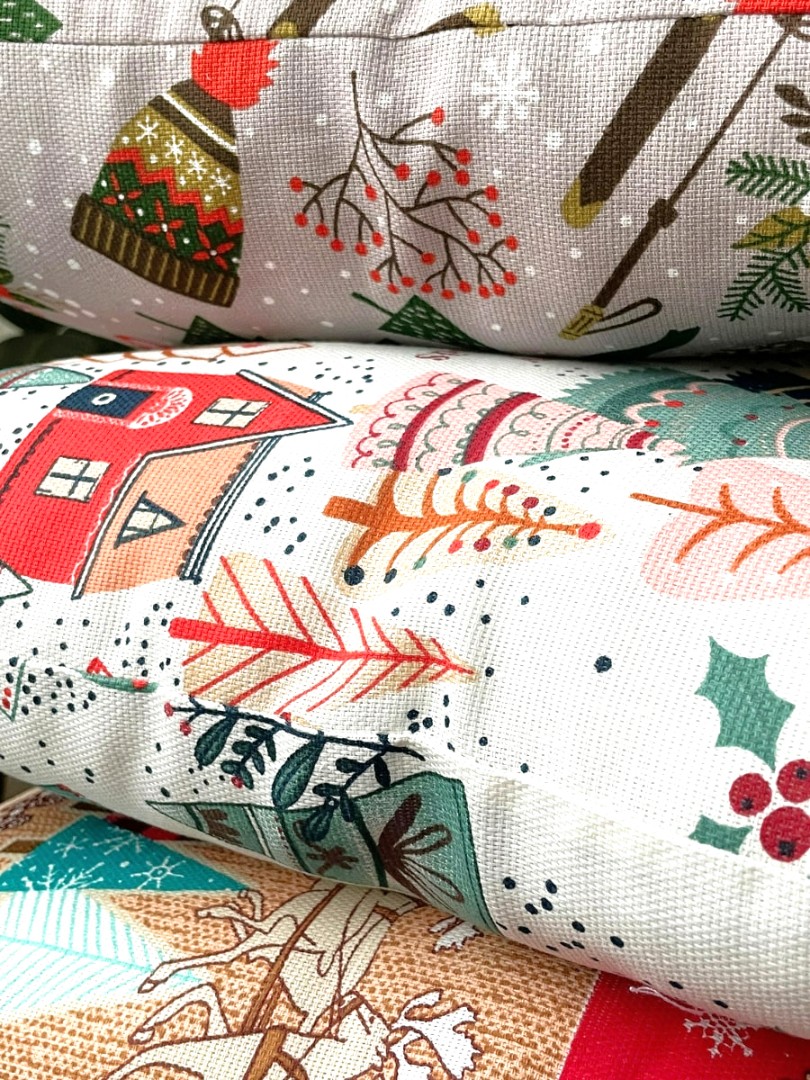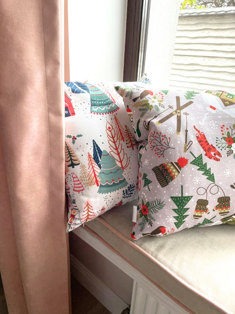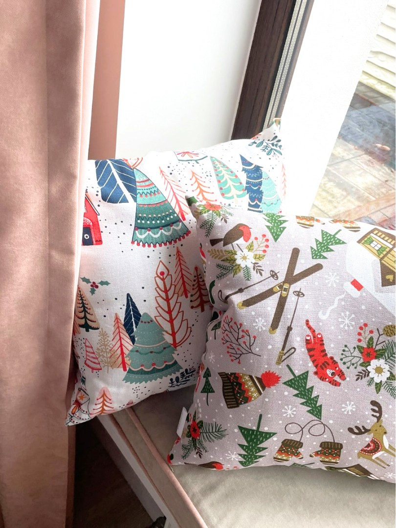 Декоративная подушка отшивается из новогодней ткани, которая идеально впишется в любые оттенки вашего праздничного интерьера. Рисунок ткани придаст вашему интерьеру праздничную атмосферу.