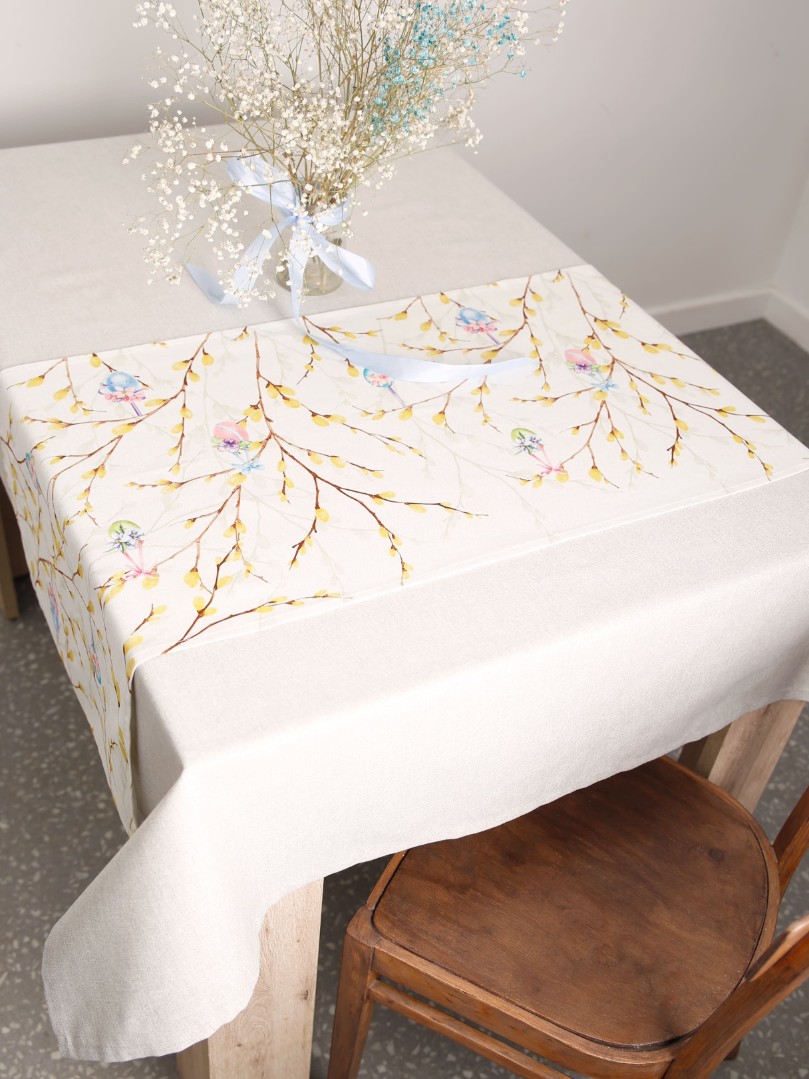 Также Дорожку на стол можно стелить поверх скатерти, тем самым комбинируя ткани и делая акцент на фактуре стола.