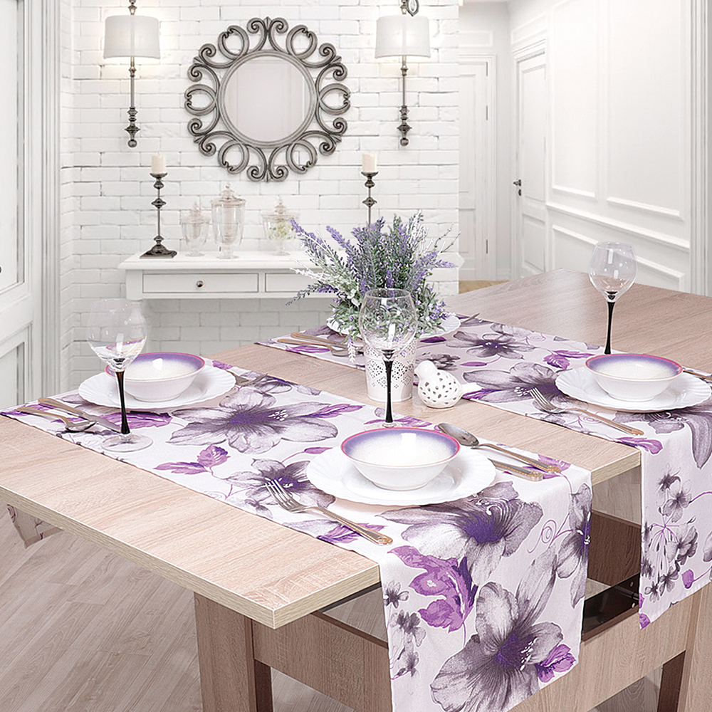 Дорожка на стол Люция — это разновидность домашнего текстиля покрывающего поверхность стола, Дорожку на стол можно использовать как отдельный элемент декора стола, так и в комбинации с основной скатертью и салфетками.
