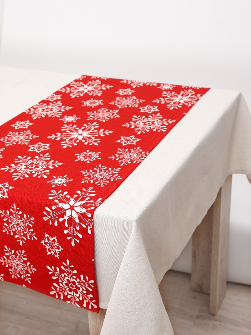 Также Дорожку на стол можно стелить поверх скатерти, тем самым комбинируя ткани и делая акцент на фактуре стола.