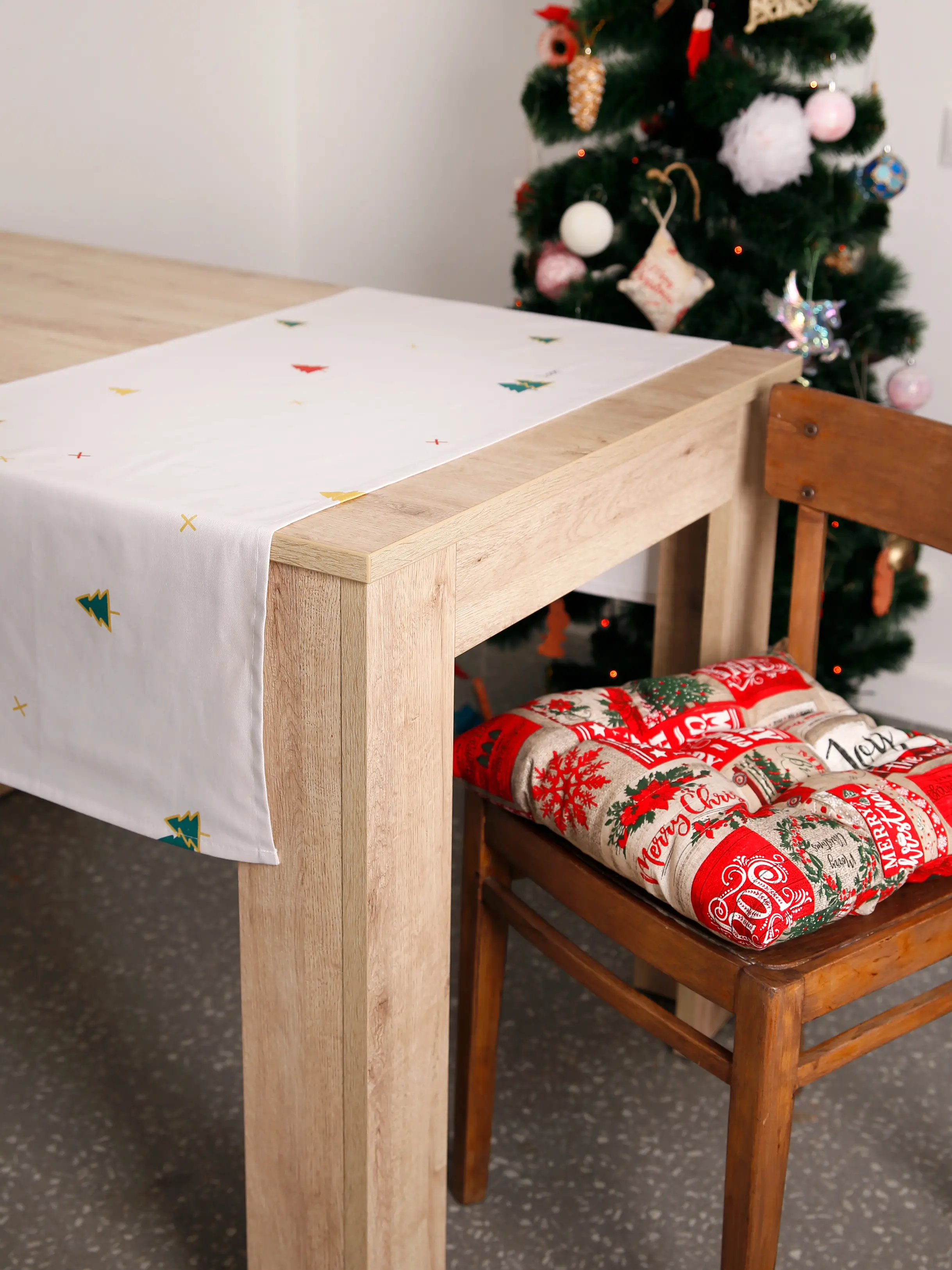Также Дорожку на стол можно стелить поверх скатерти, тем самым комбинируя ткани и делая акцент на фактуре стола.