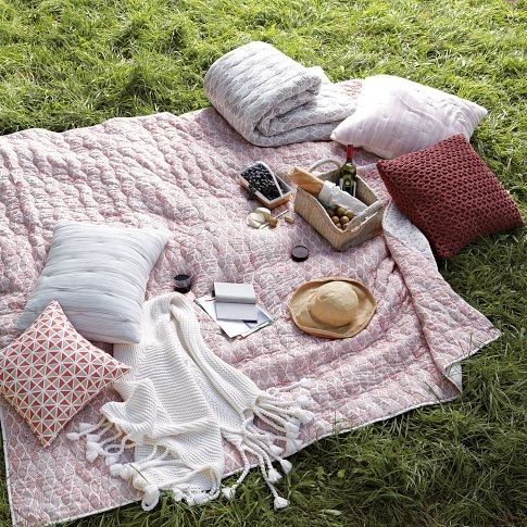 Выбрать, на чем будете сидеть. Классический вариант для пикника — это, конечно, плед, на который можно забраться, сняв обувь. Он защитит одежду и другие вещи, если трава еще не просохла. А еще из пледа можно соорудить ипровизированный шалаш для детей.