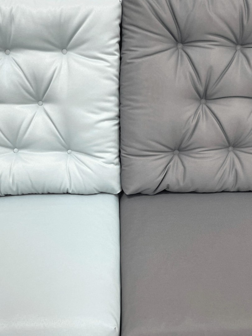 Данную модель мы отшиваем по технологии каретной стяжки фальш-пуговицами. Расположение пуговиц на подушках идентично с двух сторон.