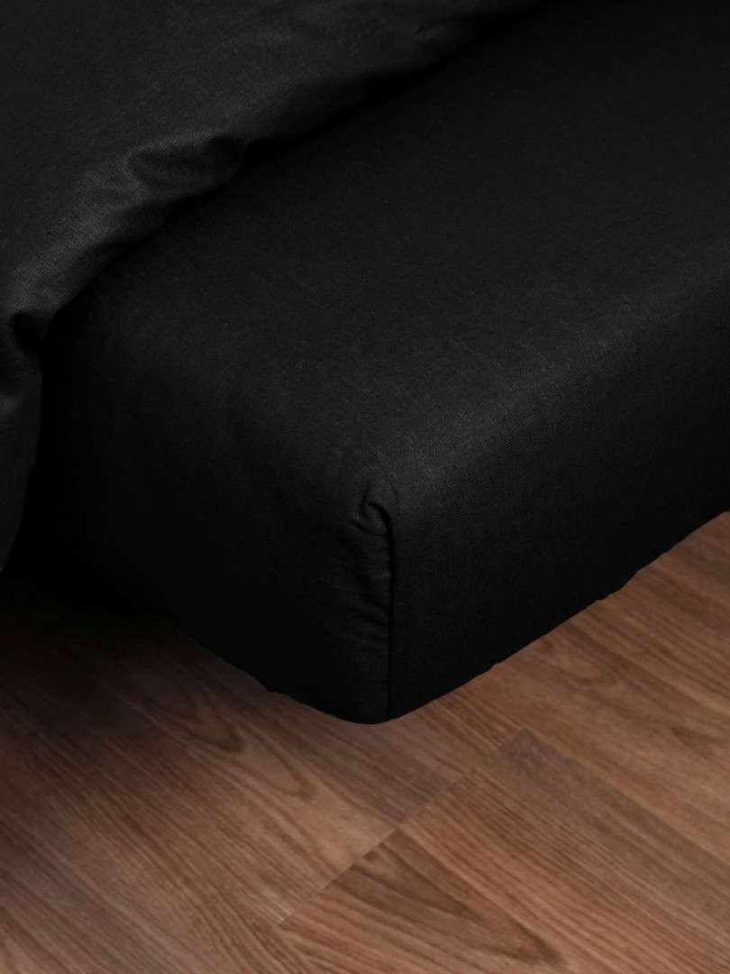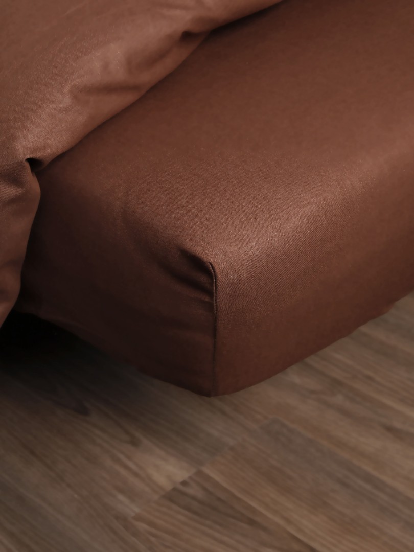 Для лучшей фиксации простыни на матрасе мы используем резинку повышенной плотности с толщиной 8 мм, которую швеи пришивают в тканевый рукав по краю изделия, чтобы постельное и его оттенок выглядели единым целым по всему периметру.