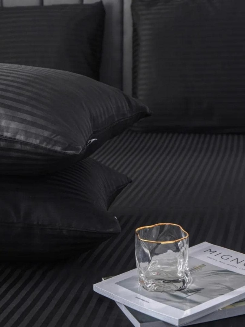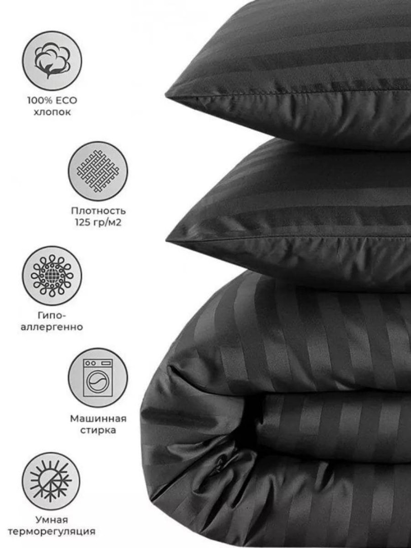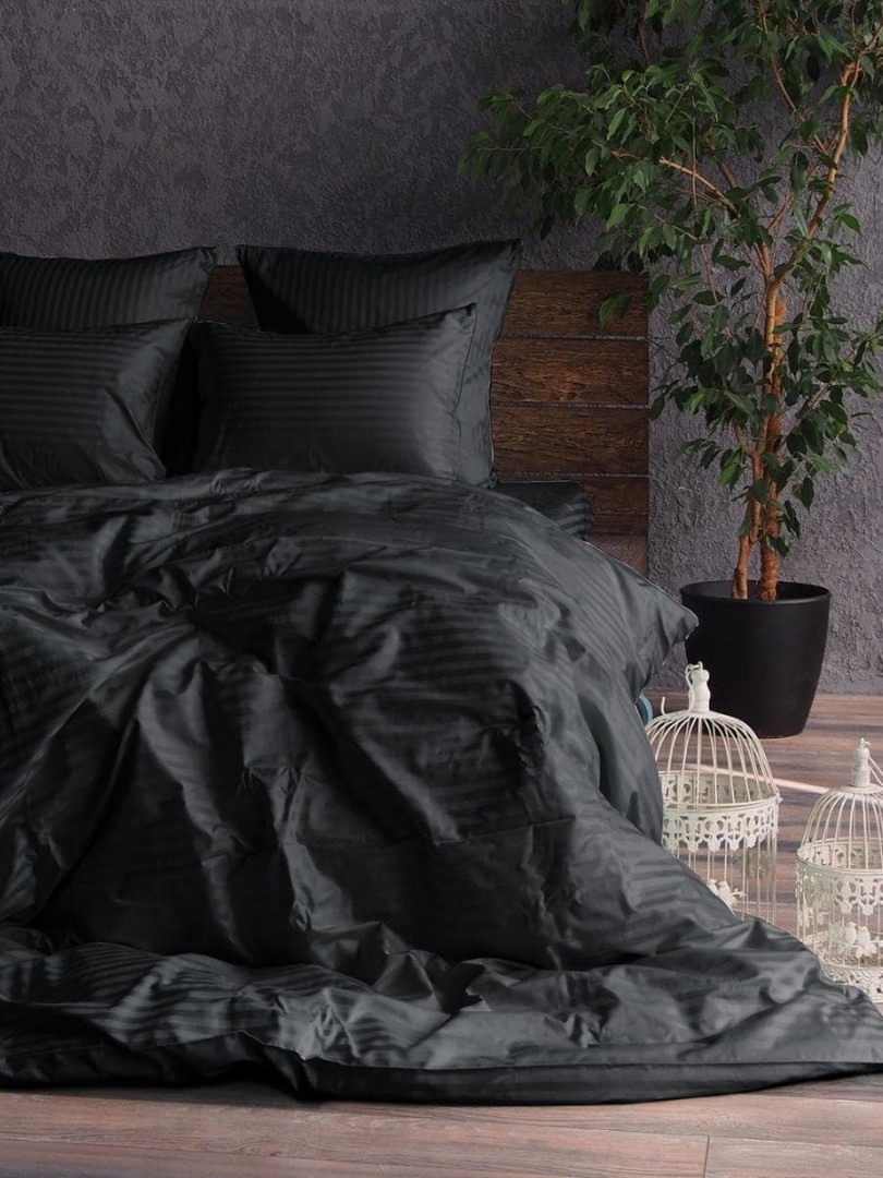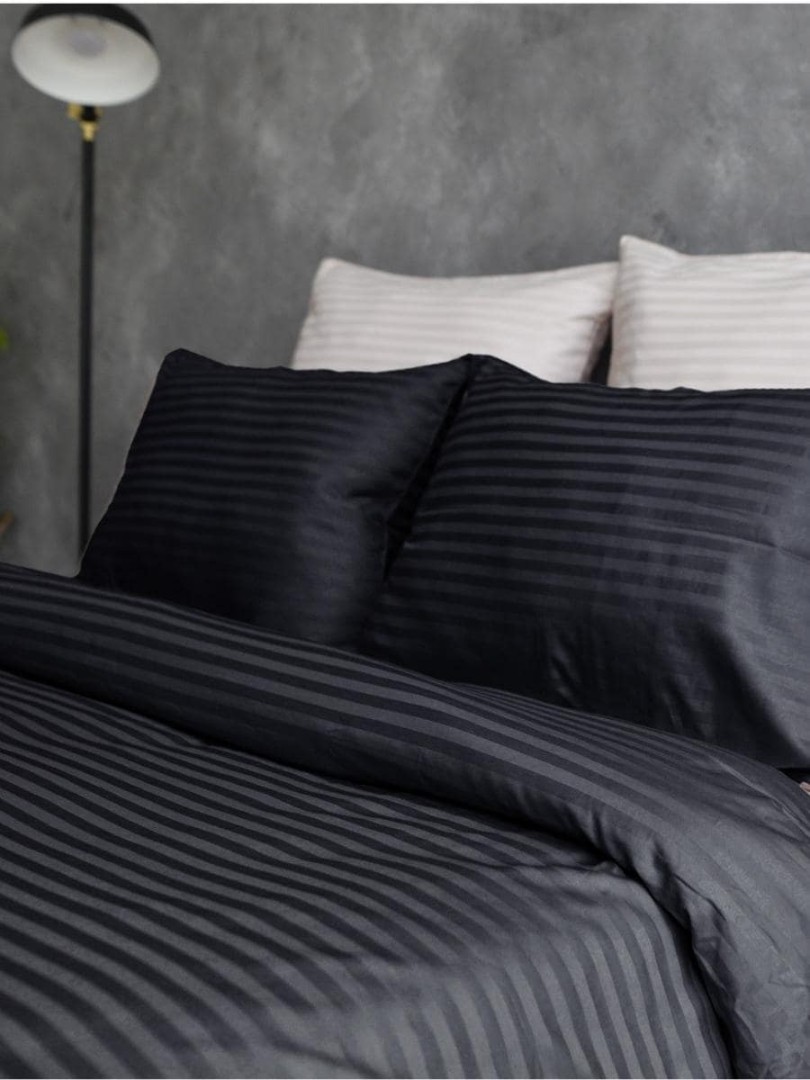 Комплект постельного белья двуспальный евро Stripe (страйп-сатин) изготовлен из хорошо скрученных хлопчатобумажных нитей. Эта технология придает особый блеск и атласную поверхность ткани.
