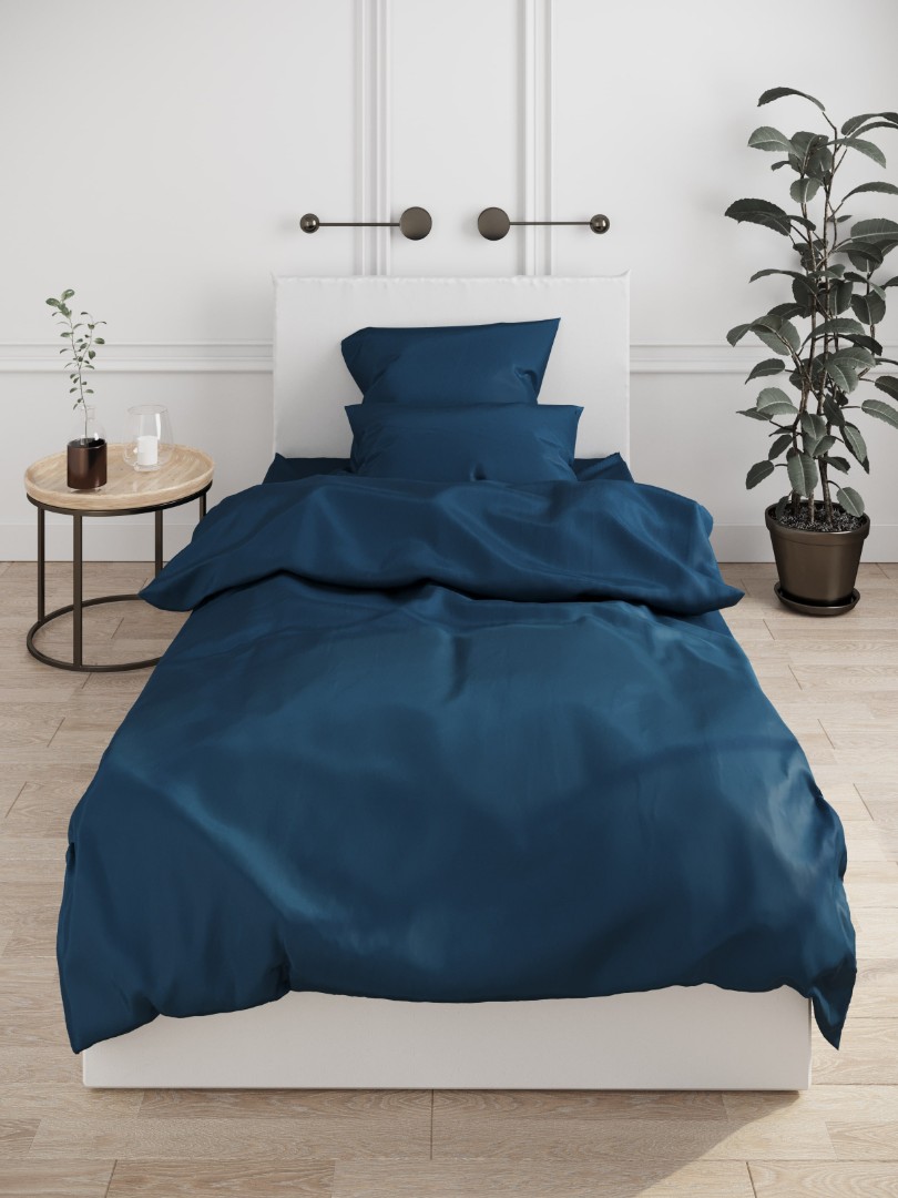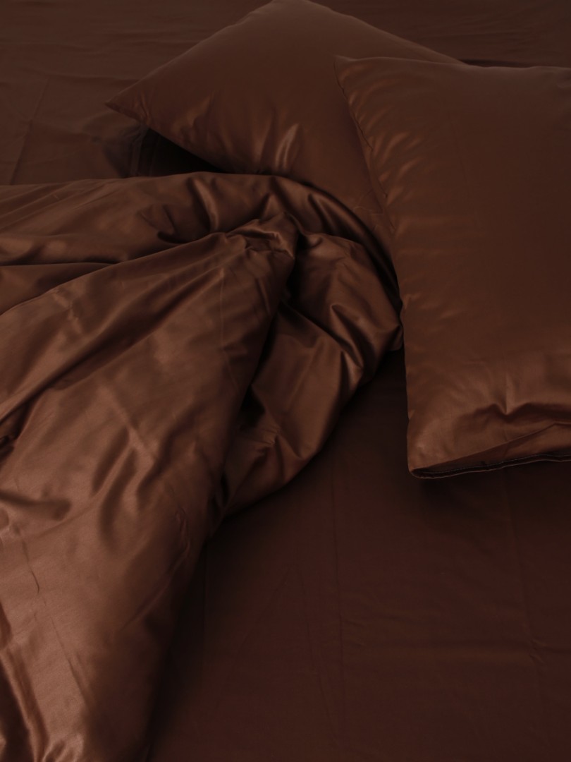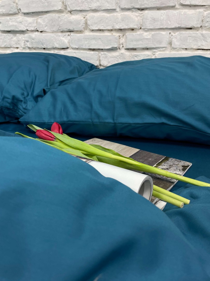 Нашу ткань отличает более тесное переплетение нитей (130 г/м²), за счет этого ткань меньше мнется (p.s. да-да, хозяйки нас поймут, хотя мы наоборот считаем красивым естественные складки натуральных изделий). Дополнительную мягкость, упругость и износостойкость придает гладкокрашенная отделка, в ее состав входят натуральные вещества, которые делают ткань более приятной на ощупь, защищают изделие против усадок после стирки. К тому же ткань менее склонна к образованию пиллинга (p.s. ммм, это получается, что больше не придется думать о катышках на белье)