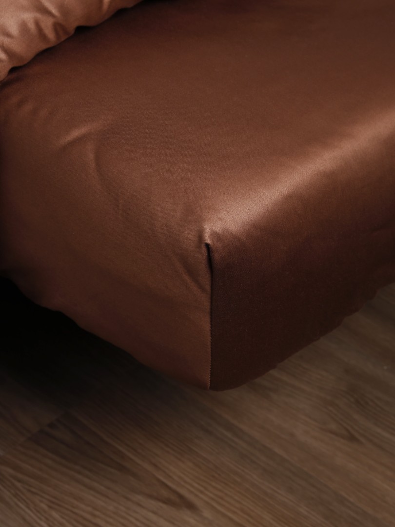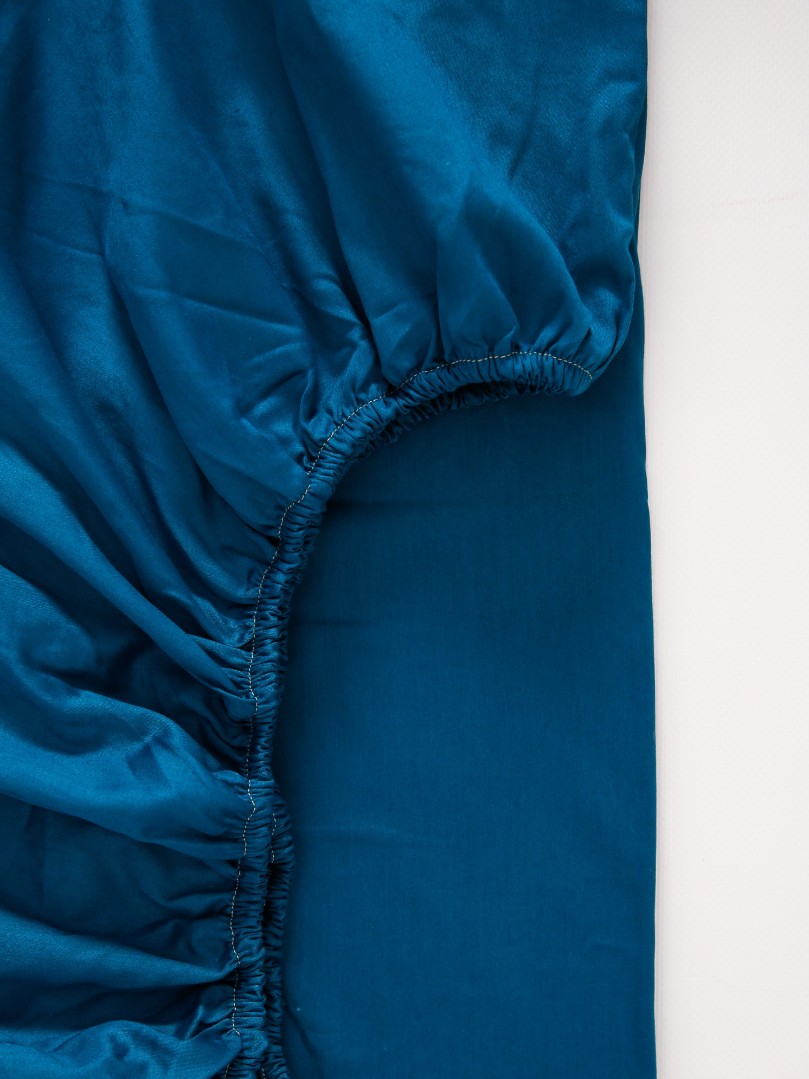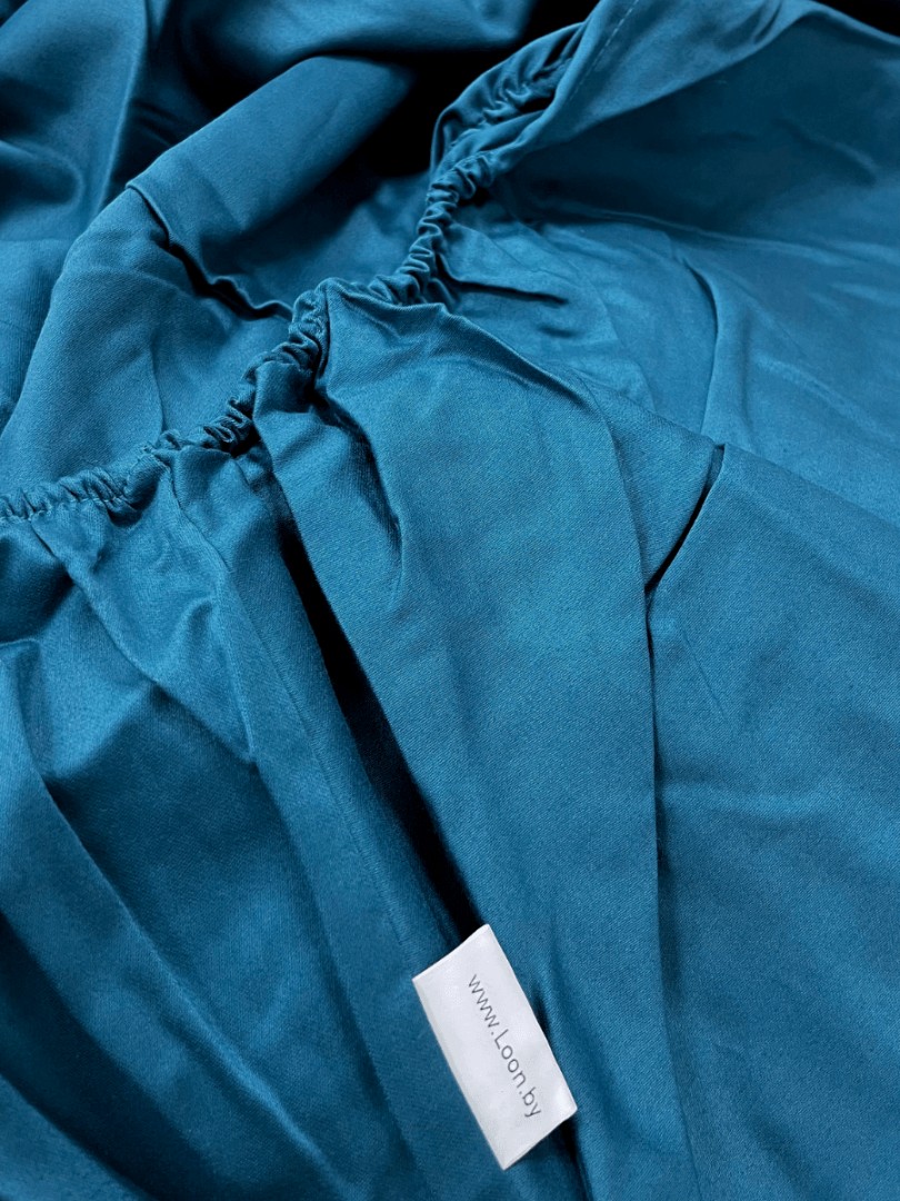 Для лучшей фиксации простыни на матрасе мы используем резинку повышенной плотности с толщиной 8 мм, которую швеи пришивают в тканевый рукав по краю изделия, чтобы постельное и его оттенок выглядели единым целым по всему периметру.