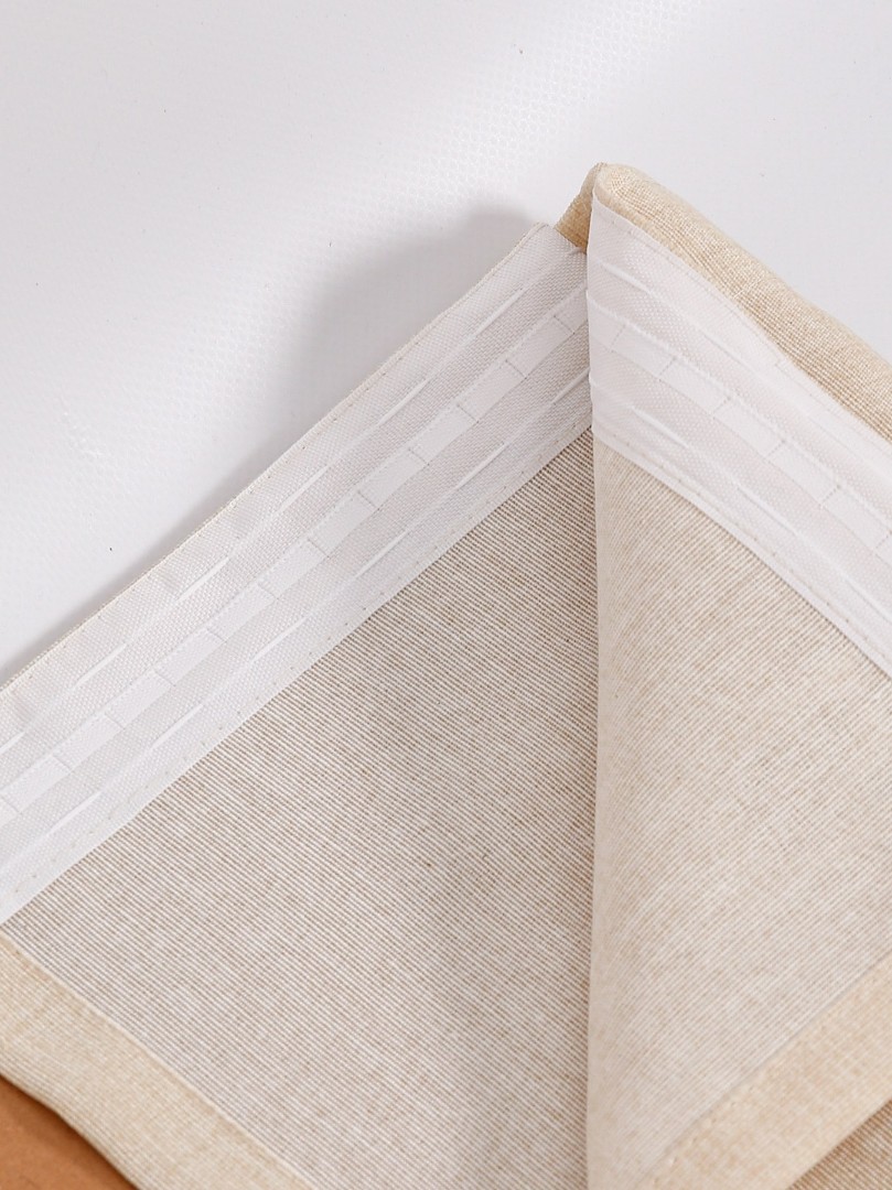 К верхней части штор Фальсо пришита шторная лента с тесьмой, с её помощью вы сможете стянуть изделие до нужного вам размера карниза.