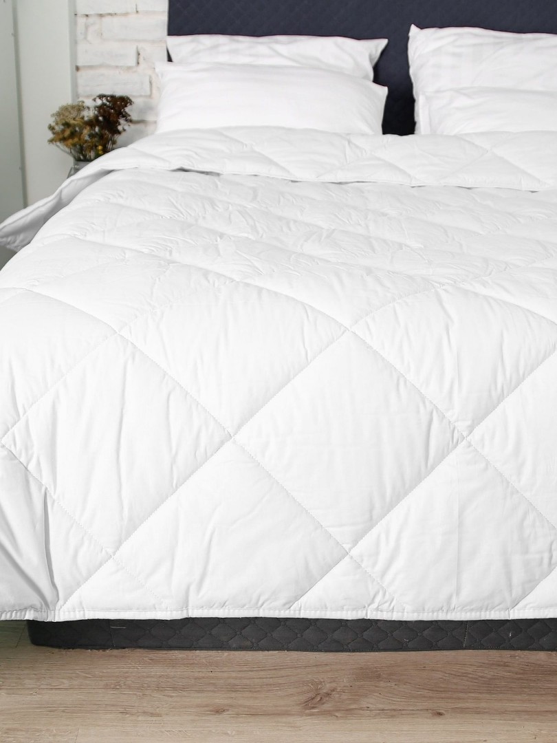 Одеяло Анита обладает прекрасными вентилирующими и теплозащитными свойствами, при этом сохраняется комфортная для отдыха температура поверхности изделия, сон будет комфортным даже в жаркие летние ночи, так как плотность наполнителя термофайбер 300 гр/м2, что делает его всесезонным и упрощает выбор универсального одеяла.