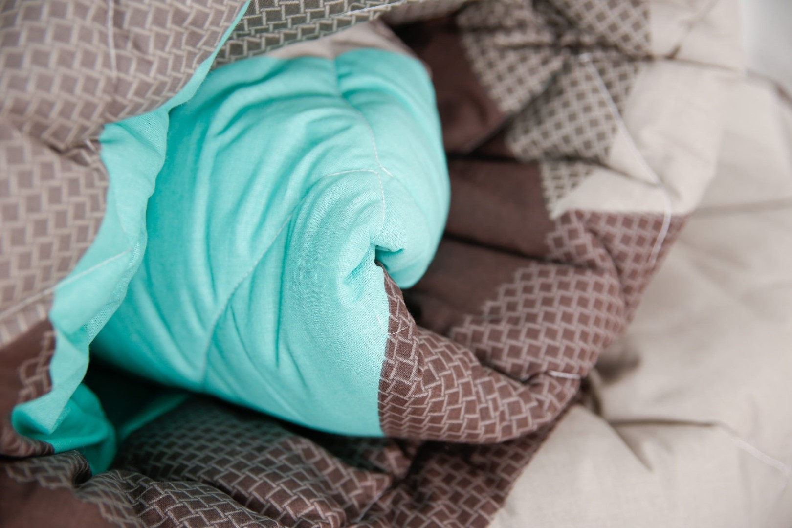Ткань чехла бязь, которая состоит из 100% хлопка, без добавления полиэстера, прочная и одновременно нежная и гладкая на ощупь, имеющая матовую поверхность. Благодаря специальной обработке одеяла для сна и стежке ткани наполнитель не пробивается сквозь основной чехол изделия и выдерживает большое количество стирок. Микропористая структура ткани препятствует накоплению пыли и образованию запахов, а также препятствует образованию бактерий, то есть не является питательной средой для микроорганизмов.