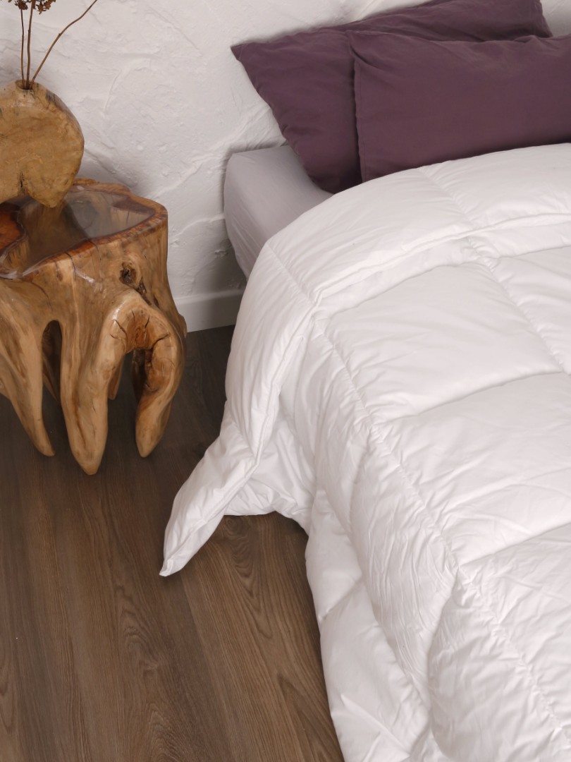 Изделия с таким наполнителем по-настоящему дышат, между волокнами постоянно циркулирует воздух, который помогает выводить лишнее тепло и влагу, создавая идеальный микроклимат во время сна.