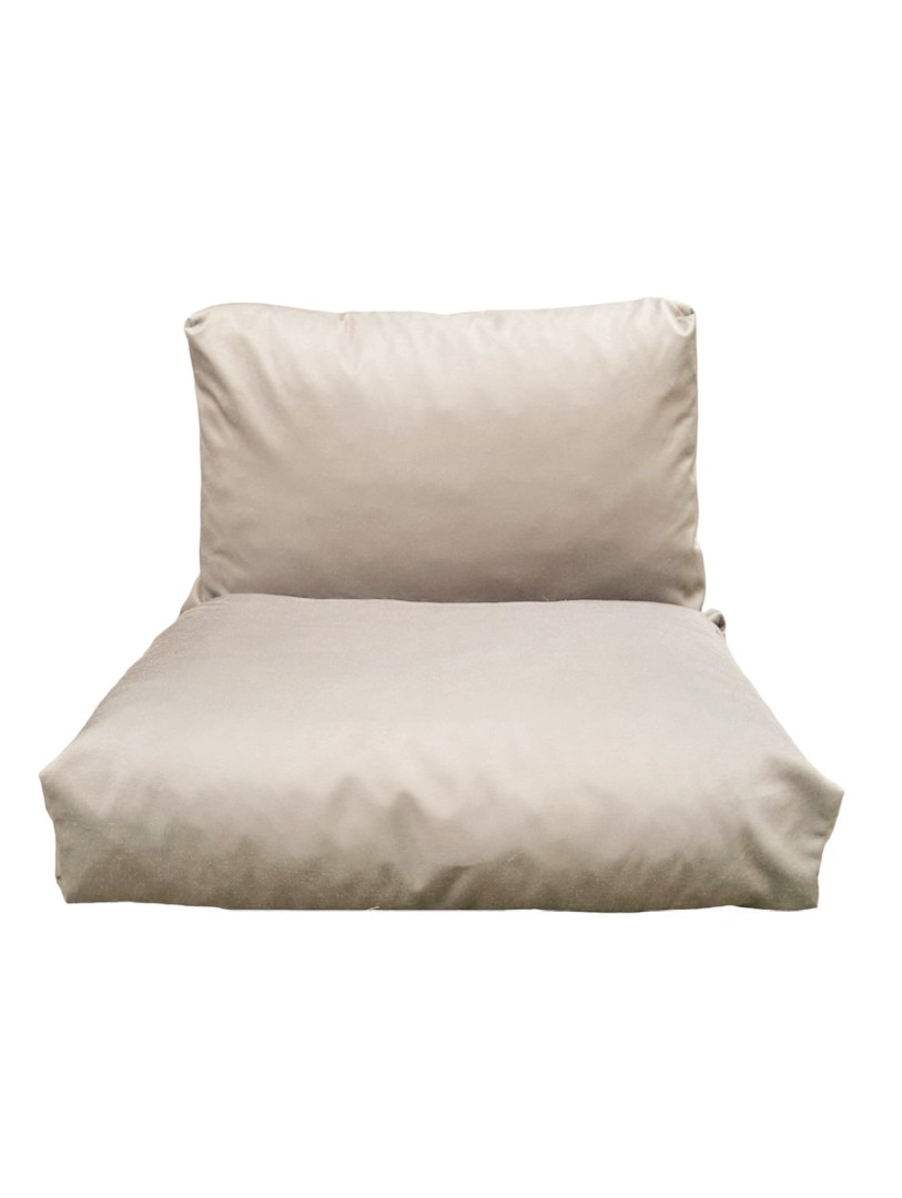 Подушка для садовой мебели сшита из водонепроницаемой ткани Грета, которая не боится грязи и воды. Воду после дождя можно просто стряхнуть.