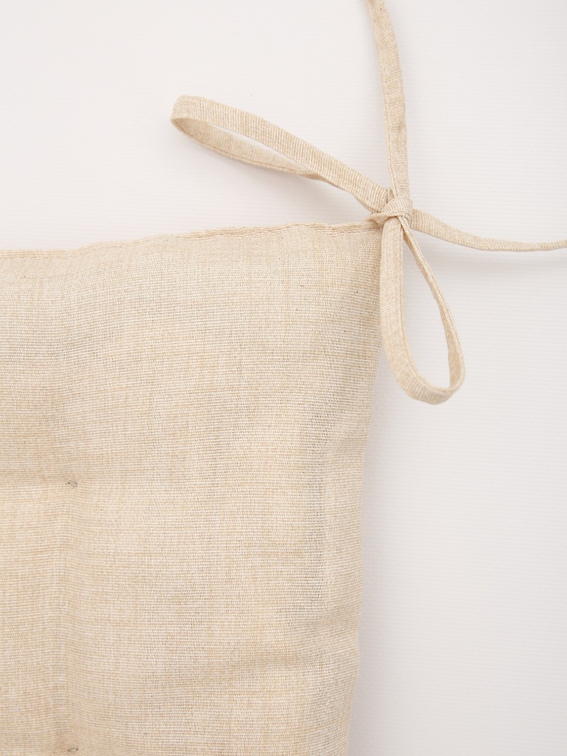Подушка для сидения Фальсо не боится стиральной машины и неравномерного сбивания наполнителя. Очень легко крепится с помощью 2 завязок. Наполнитель — ватин + синтепон.