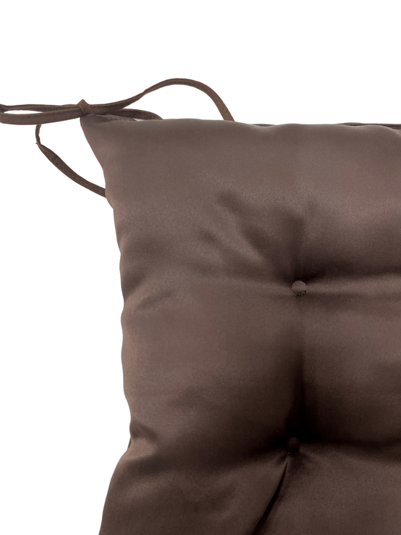 Подушка для сидения объёмная не боится стиральной машины и неравномерного сбивания наполнителя. Очень легко крепится с помощью 2 завязок. Наполнитель ватин + синтепон.