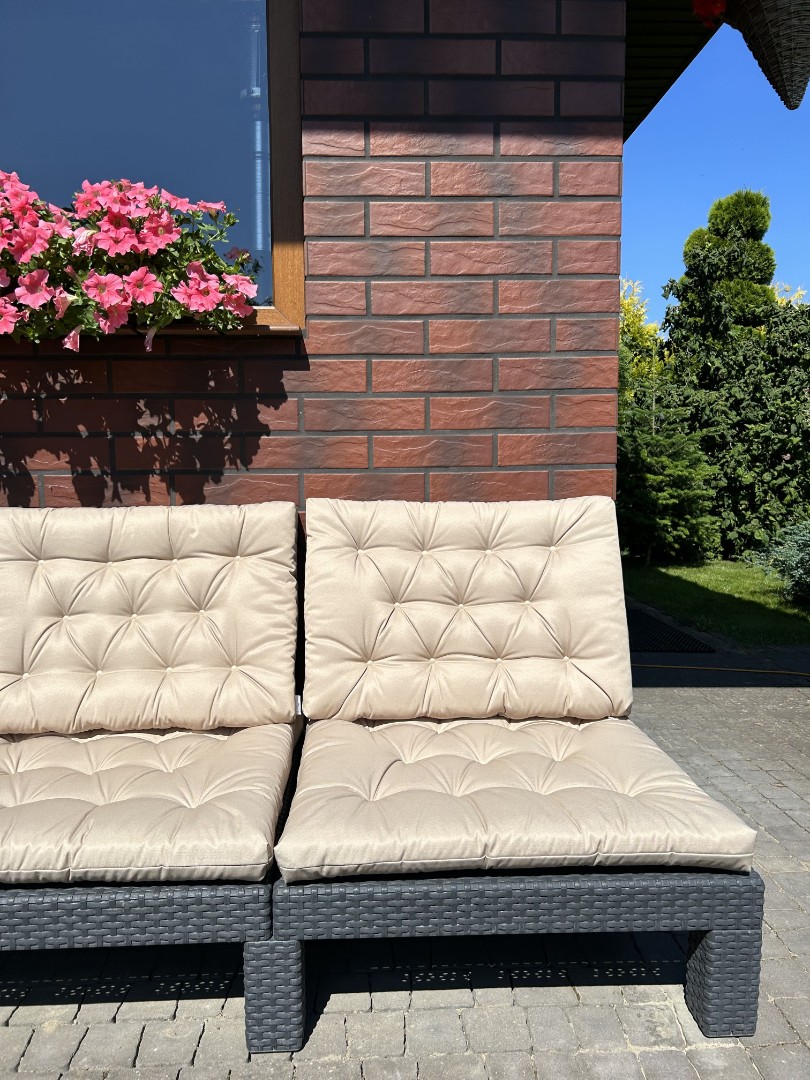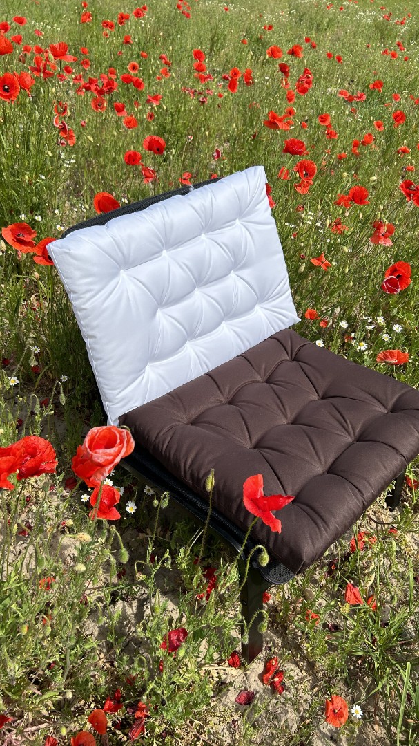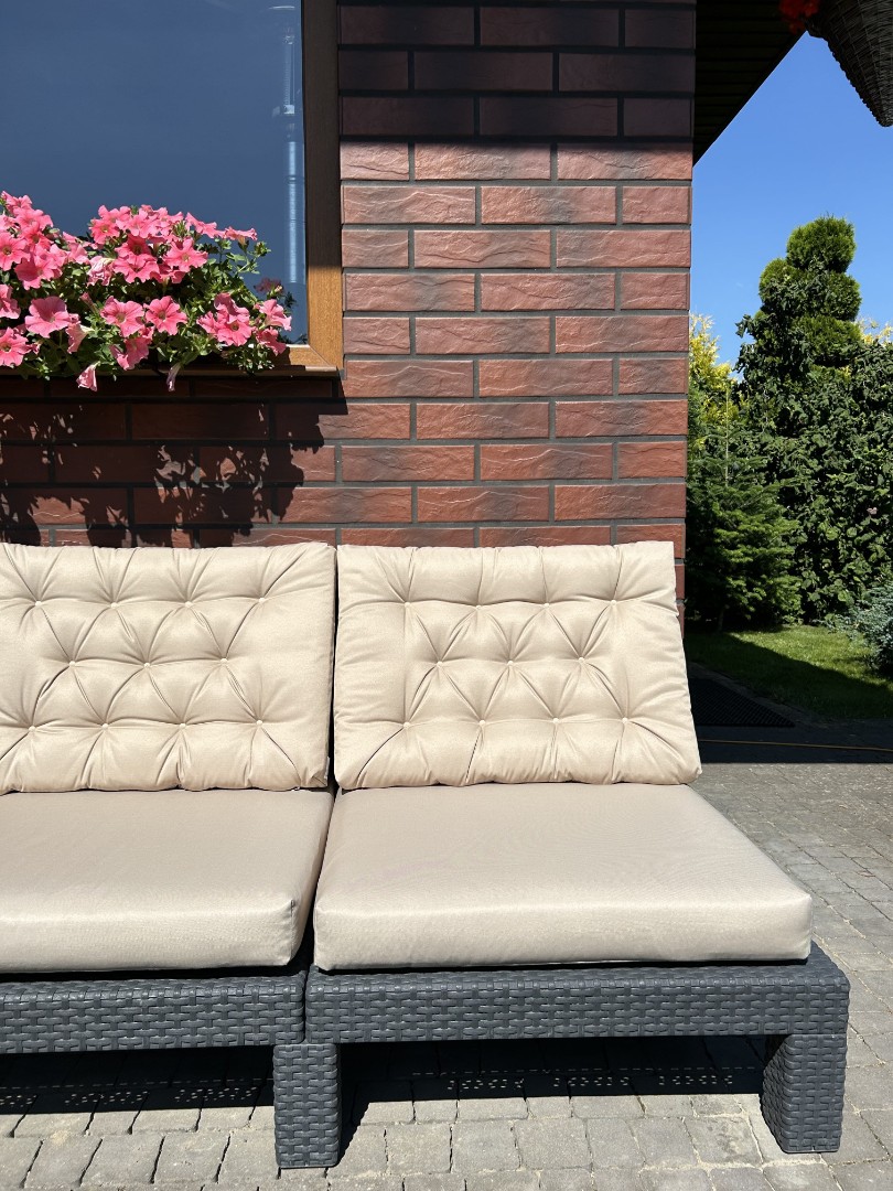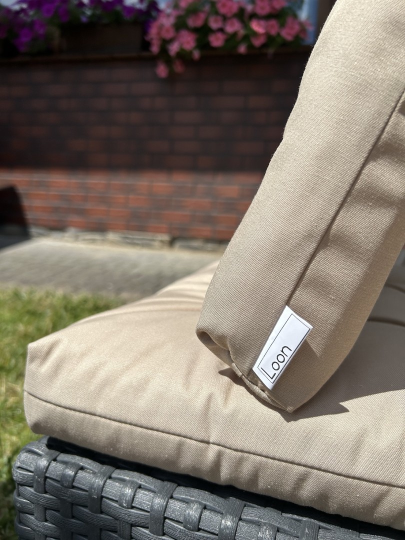 В качестве наполнителя подушек для садовой и уличной мебели мы используем плотный поролон, который располагается внутри по середине, а верхнюю и нижнюю часть изделия делаем дополнительно мягче с помощью двух слоёв синтепона.