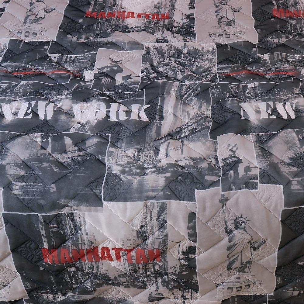 Размер покрывала 125 х 210 см. Края покрывала подшиты на 1,5 см по периметру. Состав 100% полиэстер, ткань вуаль-печать с рисунком Нью-Йорк.