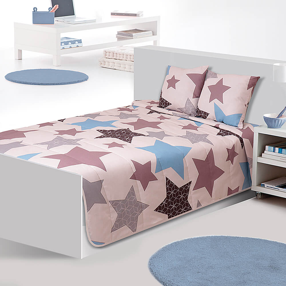Покрывало Орбита — это эксклюзивное изделие из ткани, наполненное звездами различного размера и оттенков.