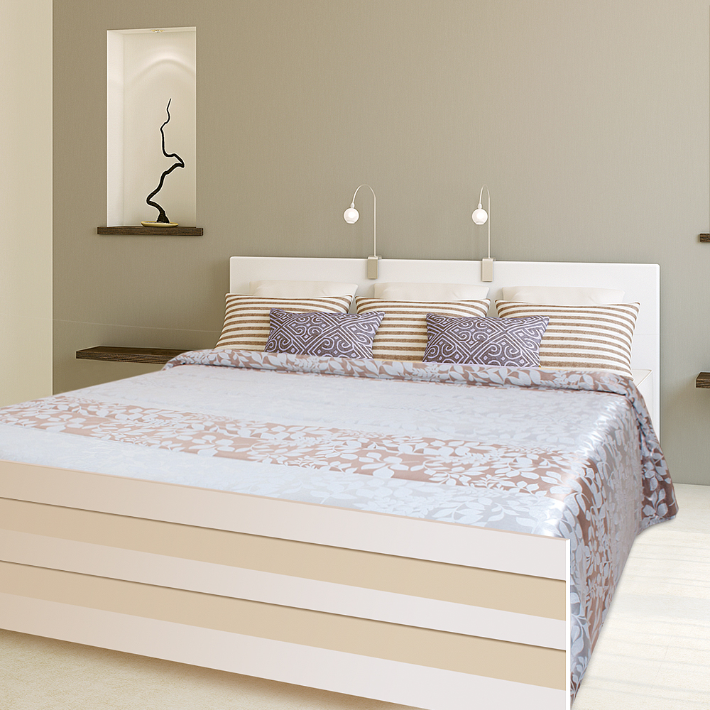 Покрывало Сиеста отшивается с комбинированием двух оттенков тканей. Материал покрывала Сиеста — плотный полиэстер, изделие не даст усадки со временем или после многоразовой стирки, а также не будет впитывать грязь. Покрывало стеганое на синтепоне.
