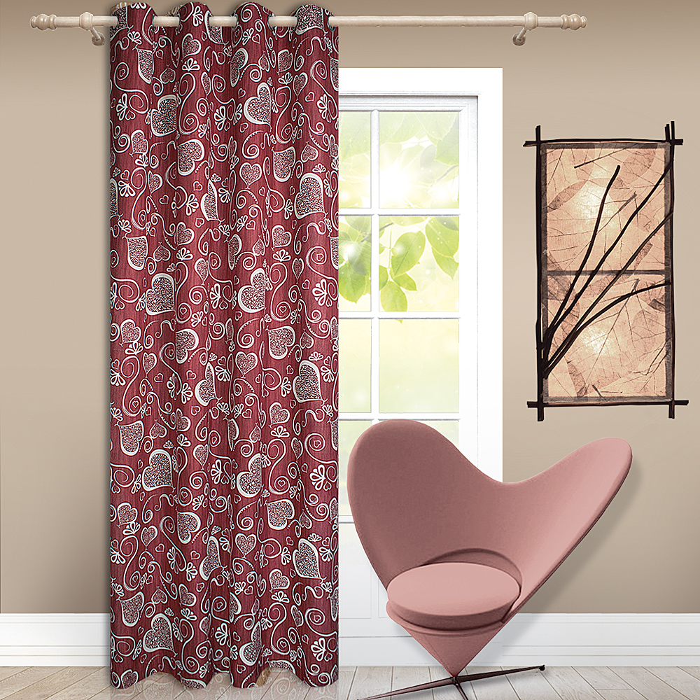 Штора Амур — это изделие с множеством сердечек в разных цветовых исполнениях и размерах.