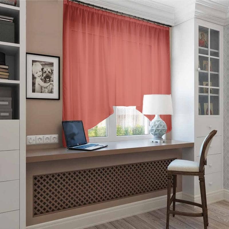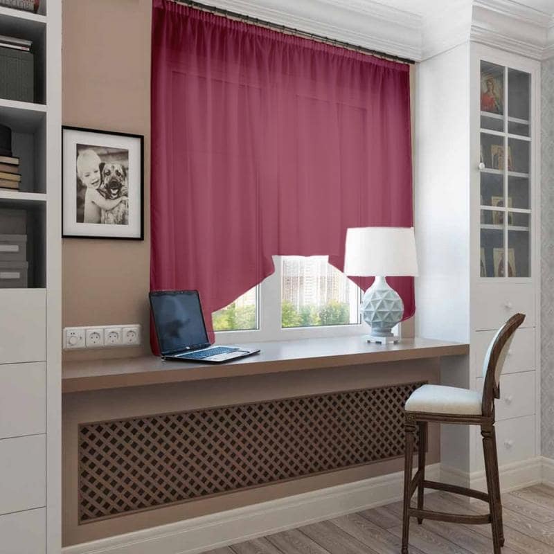Тюль это белая вуаль к которой мы пришиваем бейку в цвет изделия, чтобы она гармонично завершала штору. Эта моделька отлично подойдёт как тюль к основным (боковым) шторам из нашего каталога.