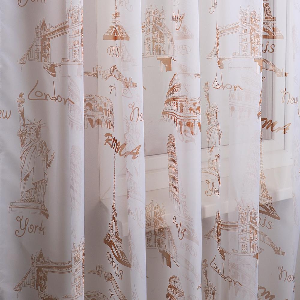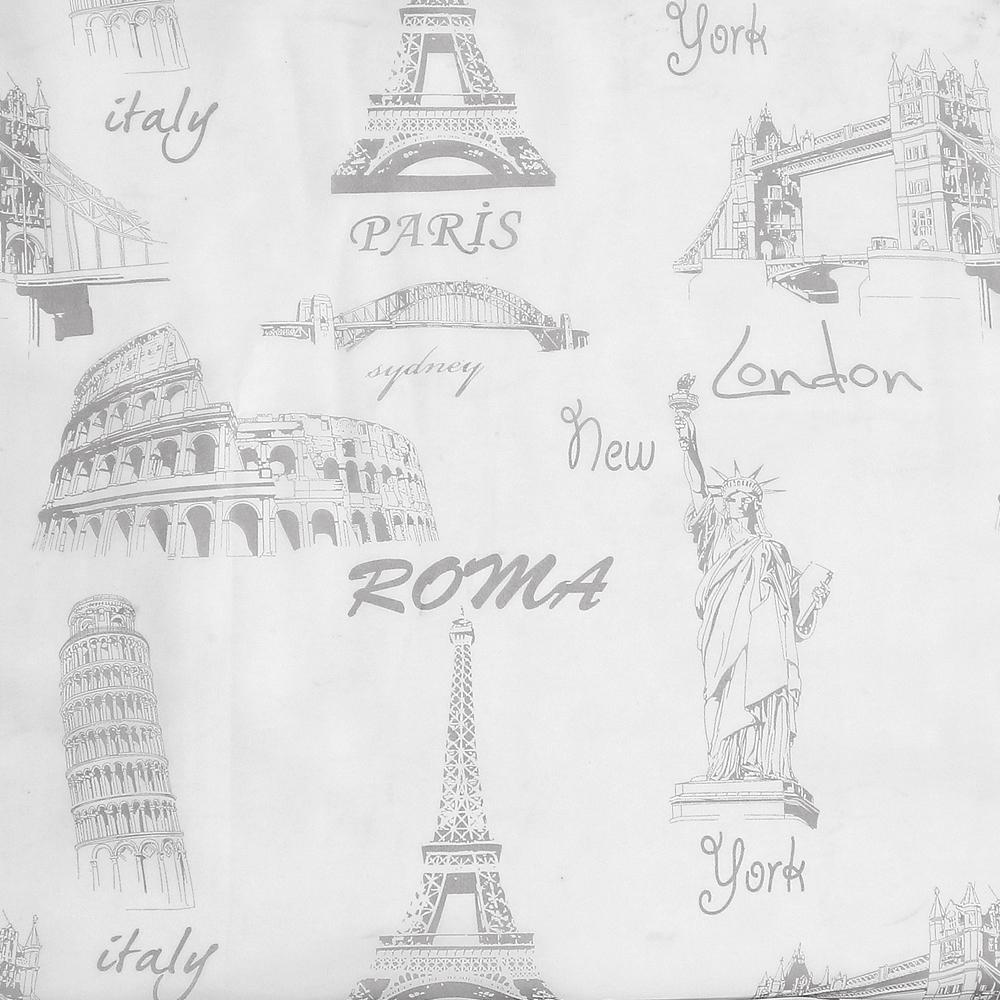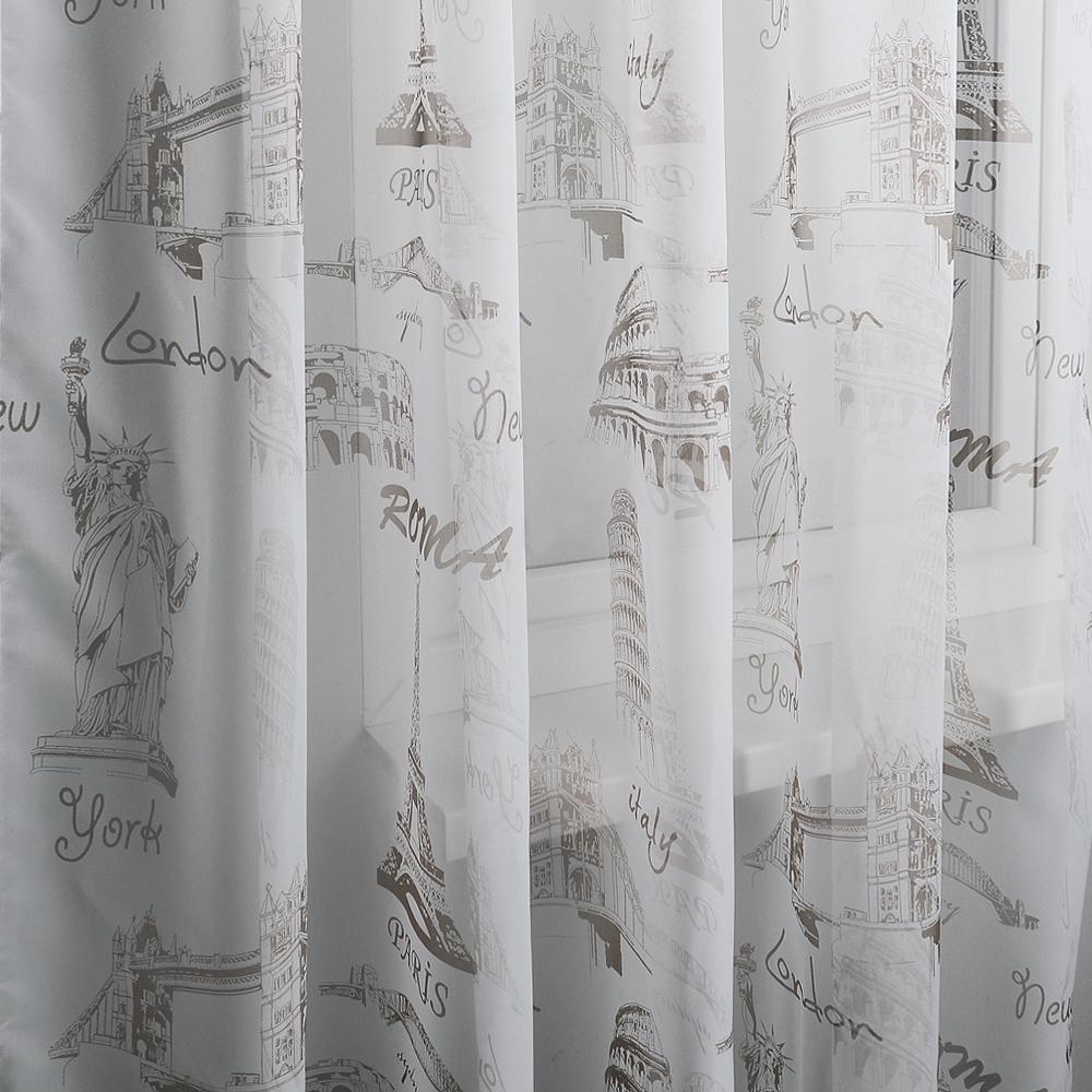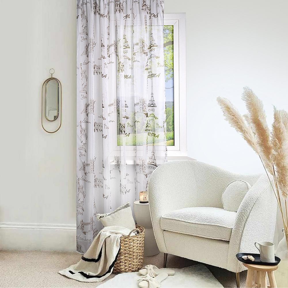 Полупрозрачная матовая штора с рисунком достопримечательностей мира . Вуаль с рисунком сделает интерьер дома уютным.