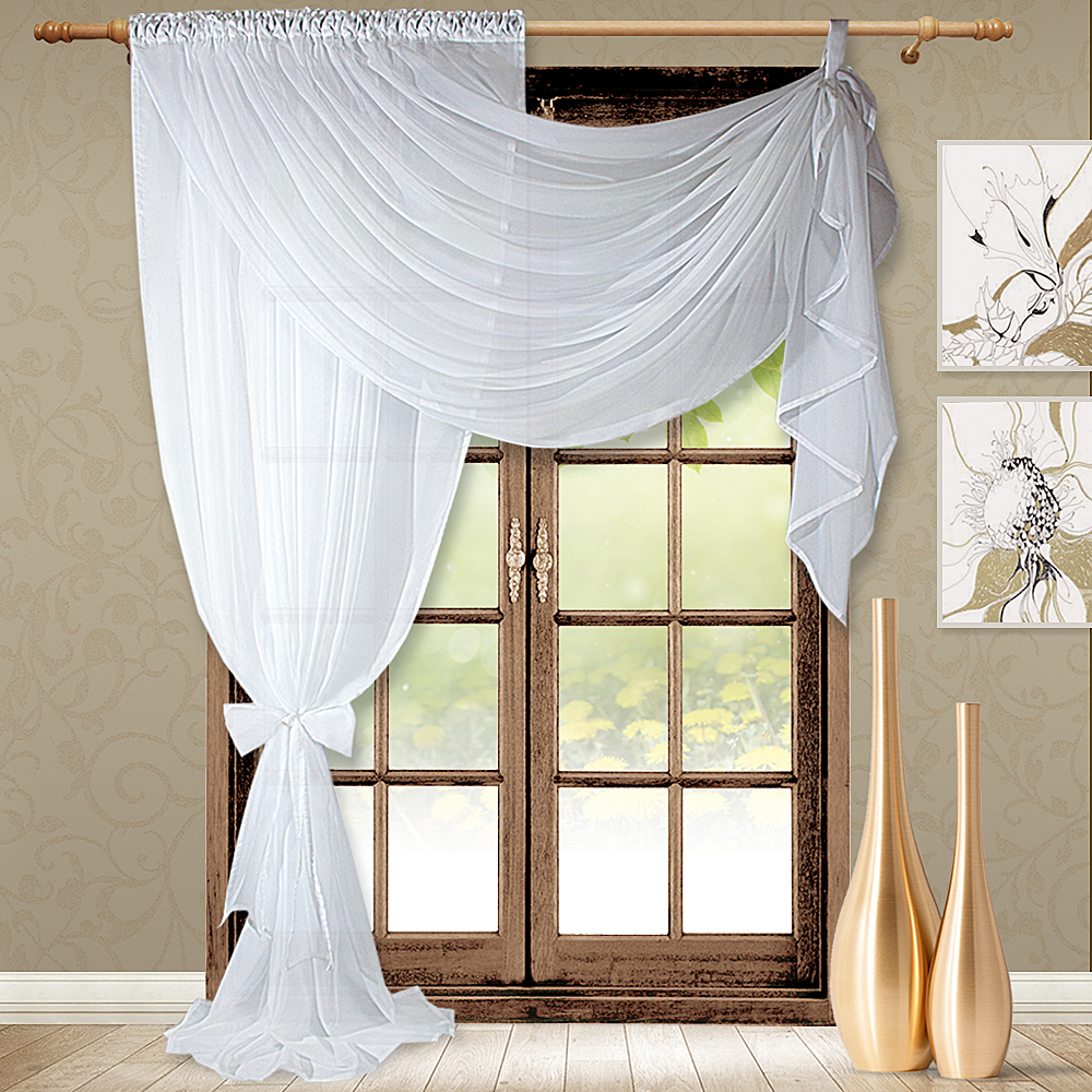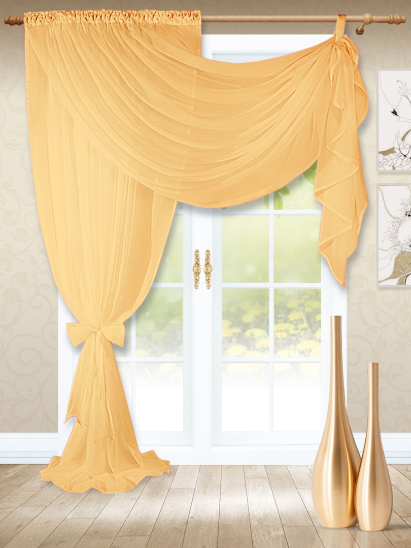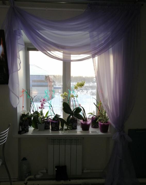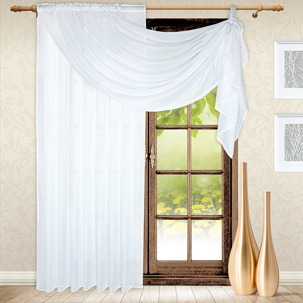 Модель изумительно смотрится, когда большое количество вуали лежит на полу, поэтому смело можете выбирать высоту больше, чем расстояние от карниза до пола.