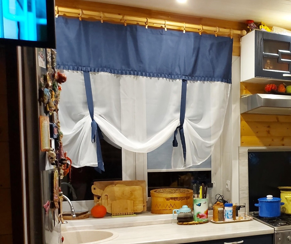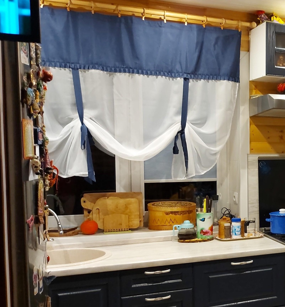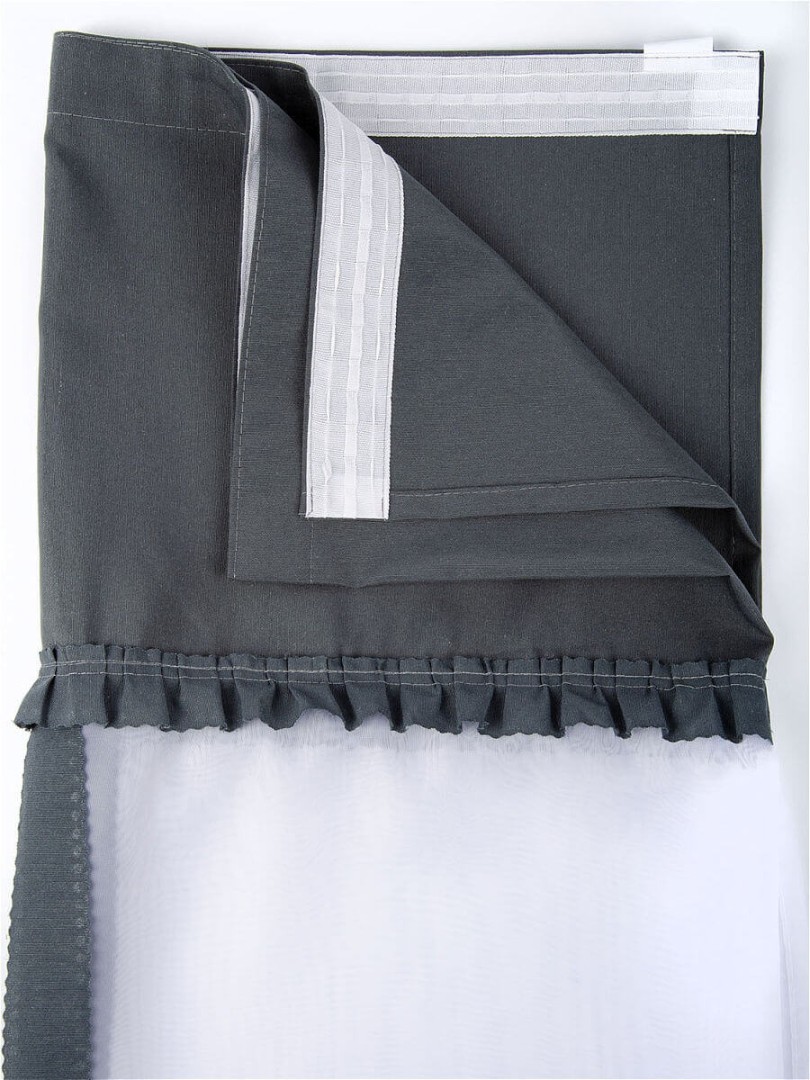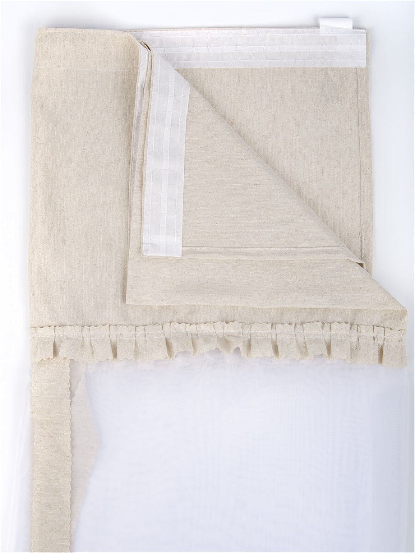 Шторы Алисия — это сочетание белой воздушной вуали с хлопковой тканью, которая пришивается к верхней части шторы, также мы пришиваем завязки по высоте изделия, чтобы вы могли по принципу римской шторы затягивать штору на нужную вам высоту.
