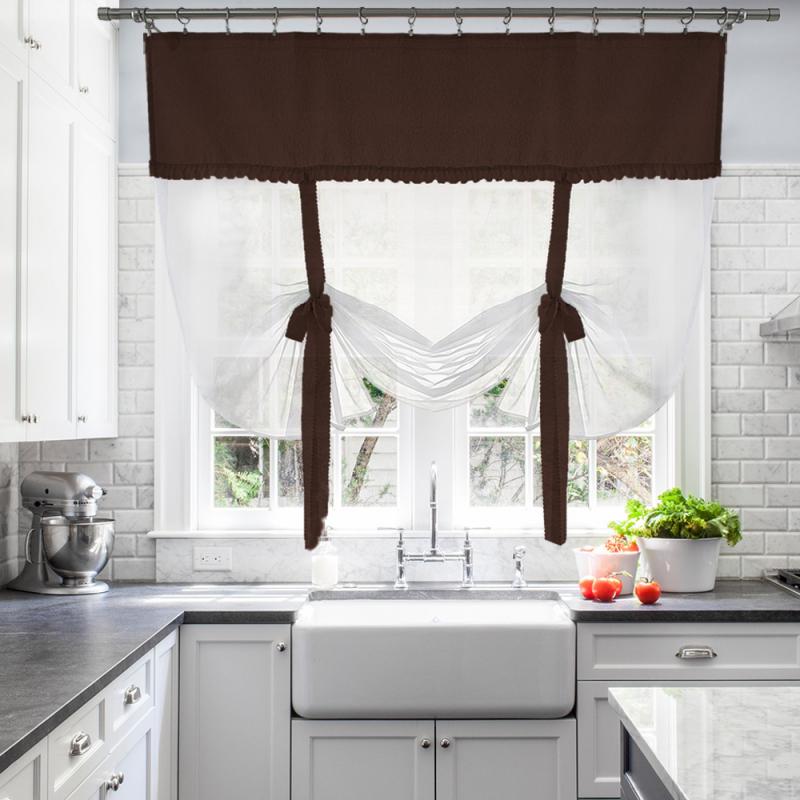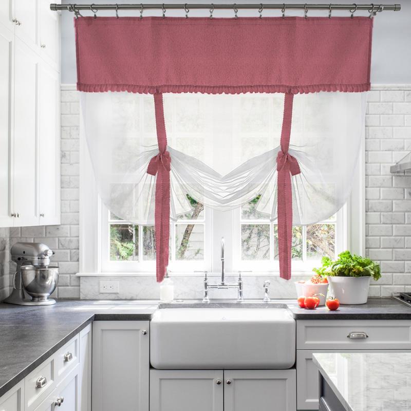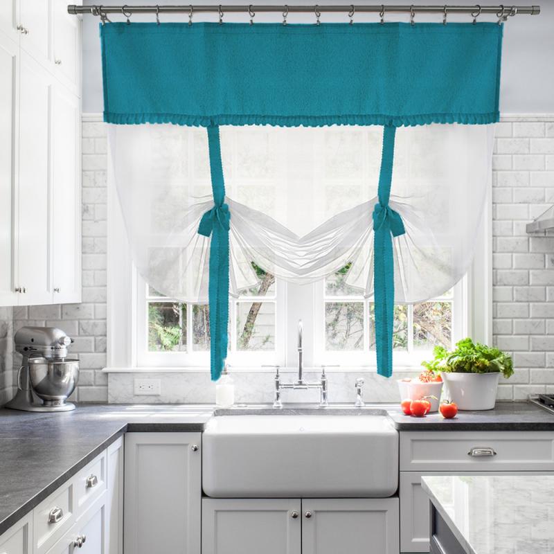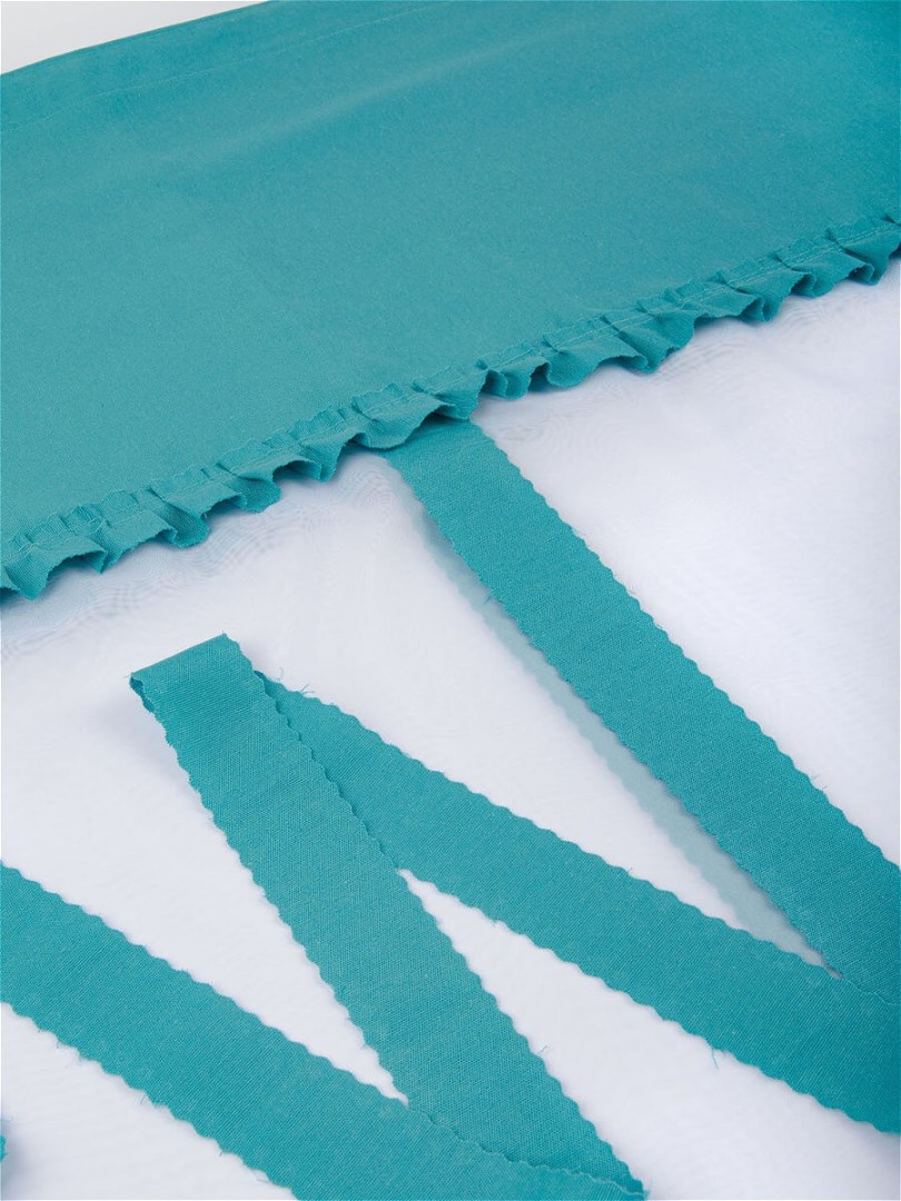 Шторы Алисия — это сочетание белой воздушной вуали с хлопковой тканью, которая пришивается к верхней части шторы, также мы пришиваем завязки по высоте изделия, чтобы вы могли по принципу римской шторы затягивать штору на нужную вам высоту.