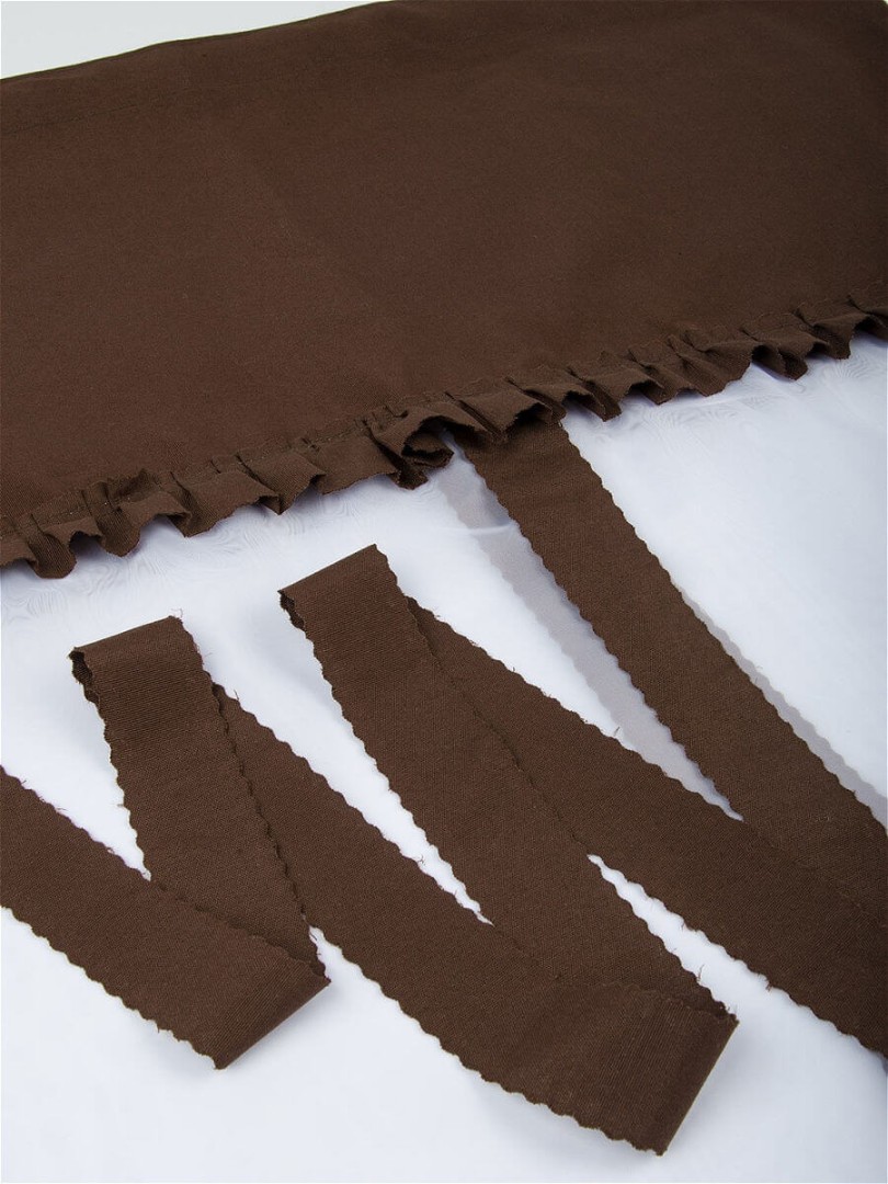 К верхней части шторы Алисия пришита шторная лента с тесьмой, с её помощью вы сможете стянуть изделие до нужного вам размера карниза.