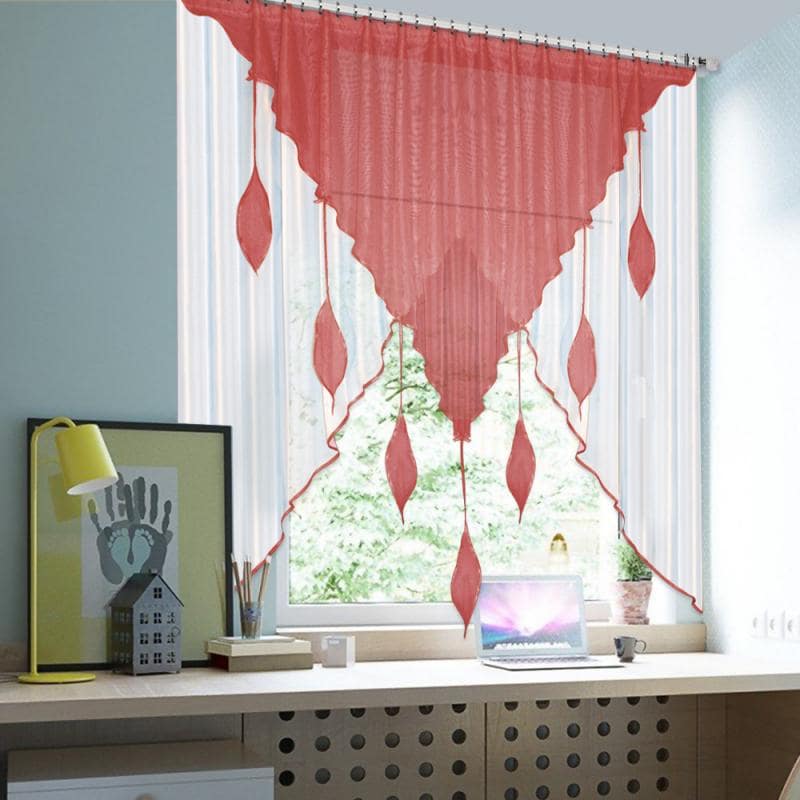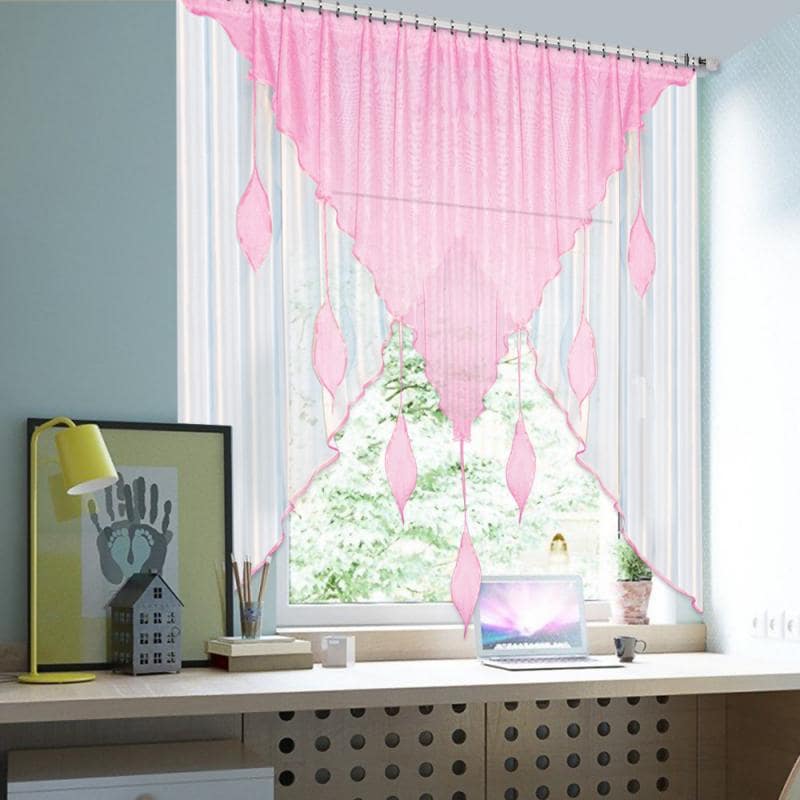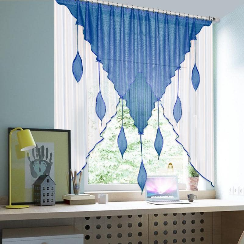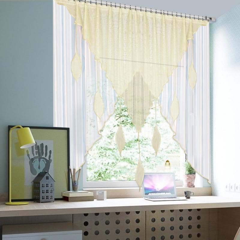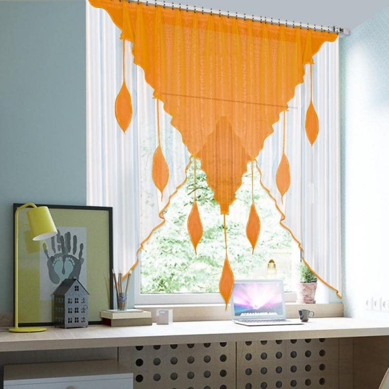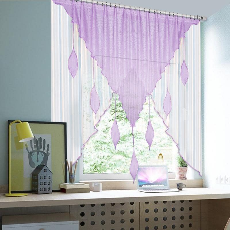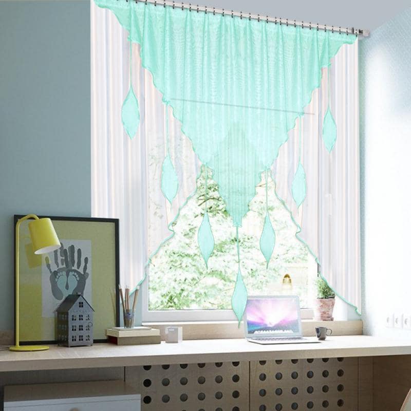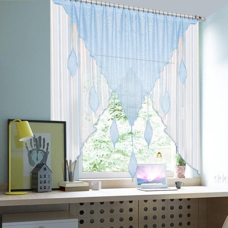 Шторы Капель — это сочетание белой и цветной вуали разных форм, которое комбинируется множеством различных оттенков, также мы пришиваем по периметру бейку в цвет изделия, чтобы она гармонично завершала штору.