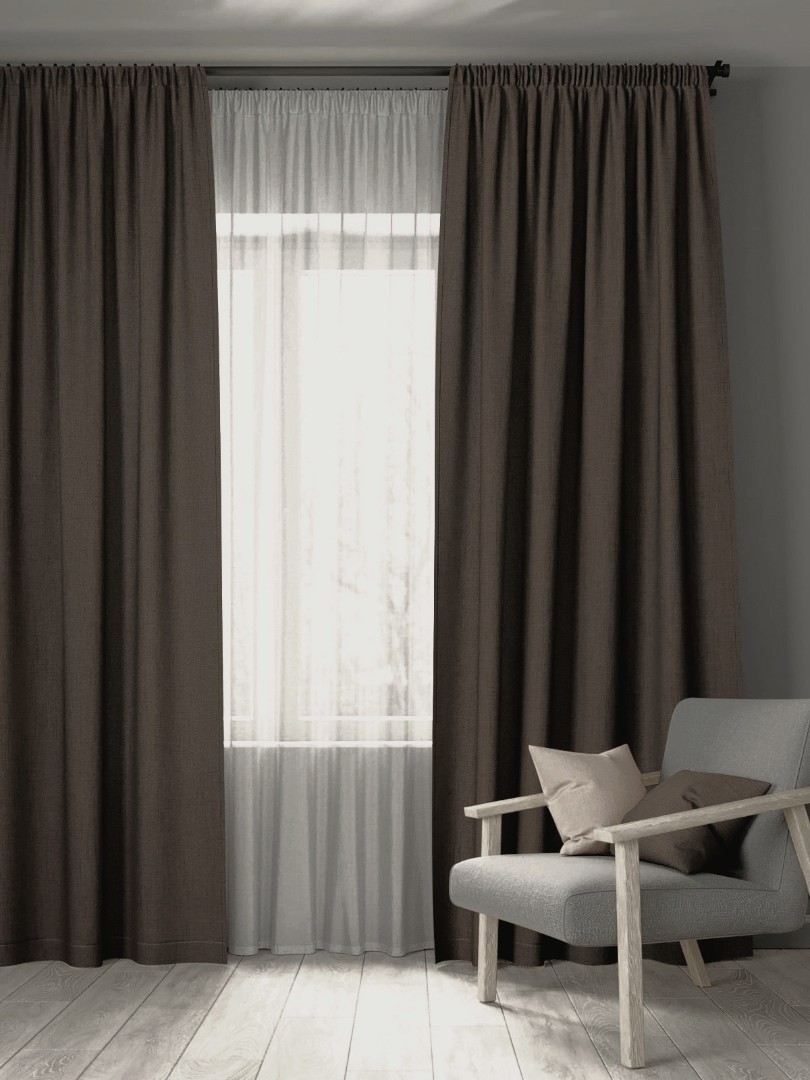 К верху шторы пришита шторная лента, с помощью которой вы сможете закрепить изделие на крючки, прищепки и т.д. Шторы Латте подходят для всех типов карниза.