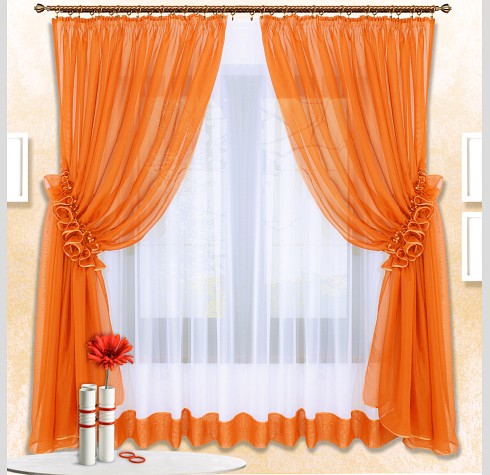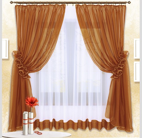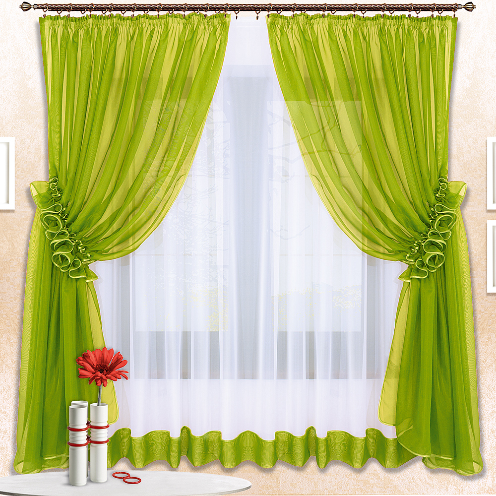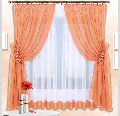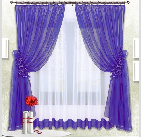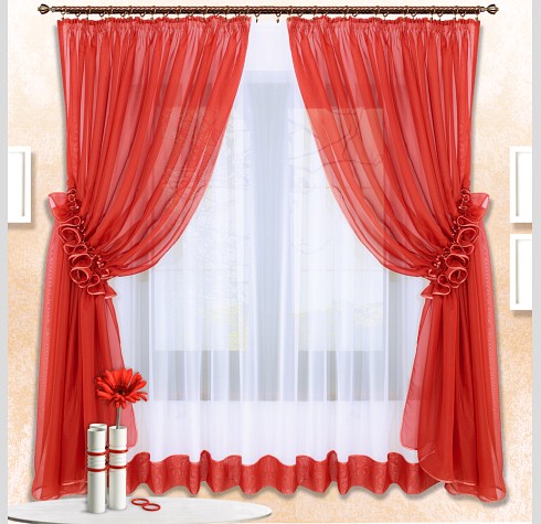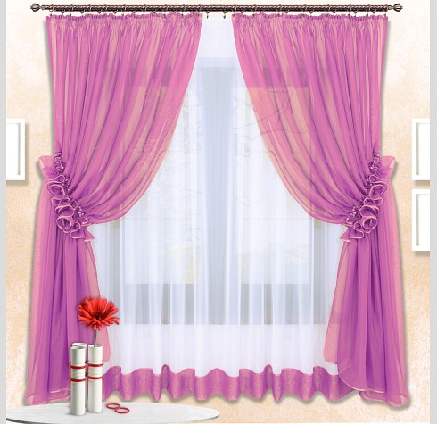 Шторы Луиза — это сочетание белой и цветной вуали, боковые шторы стягиваются в «гармошку» наподобие рюш.