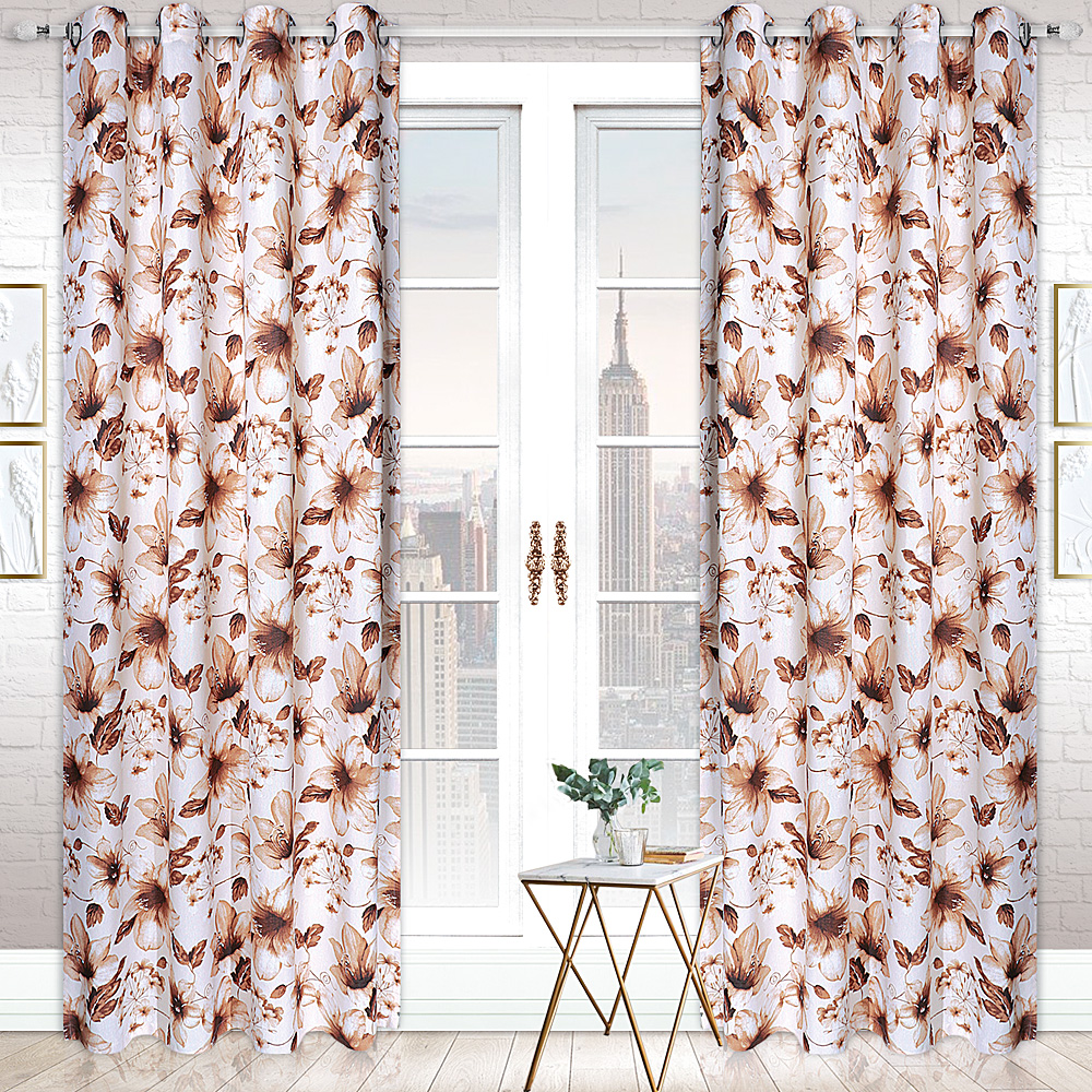 Шторы Люция изготавливаются из плотной хлопковой ткани с цветочным рисунком. Мы отшиваем данное изделие в коричневых и сиреневых оттенках.