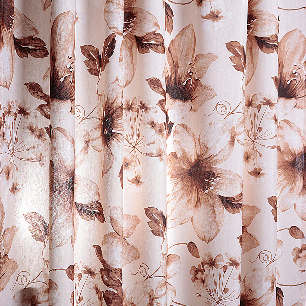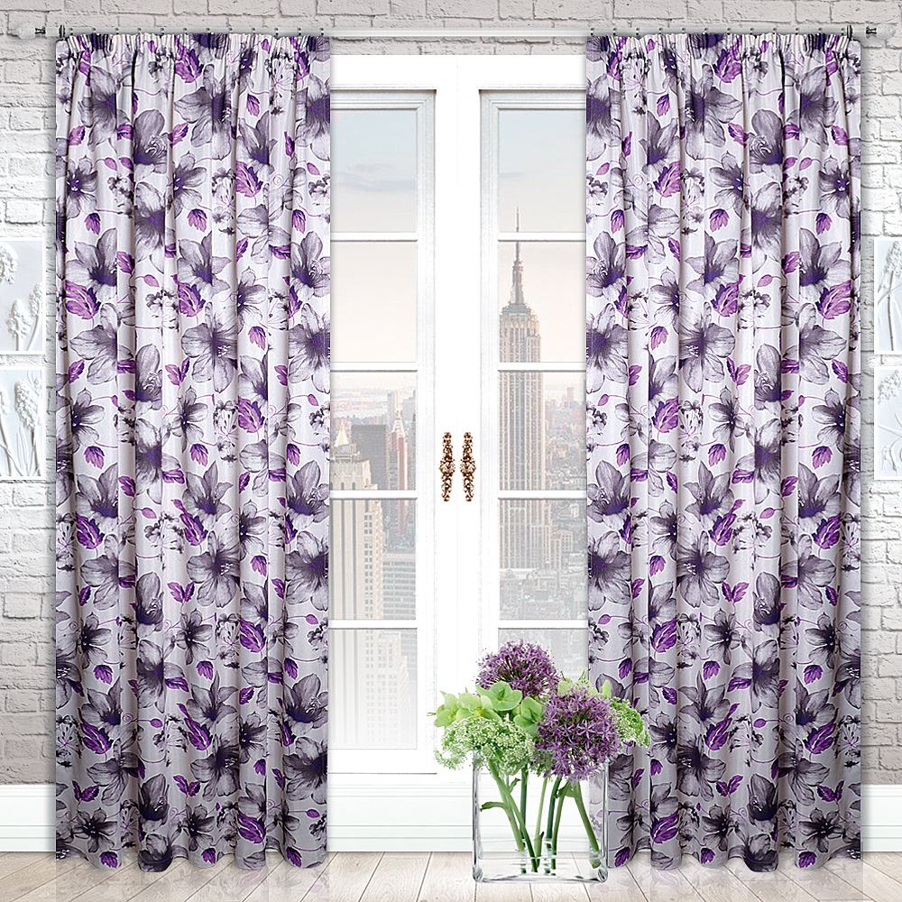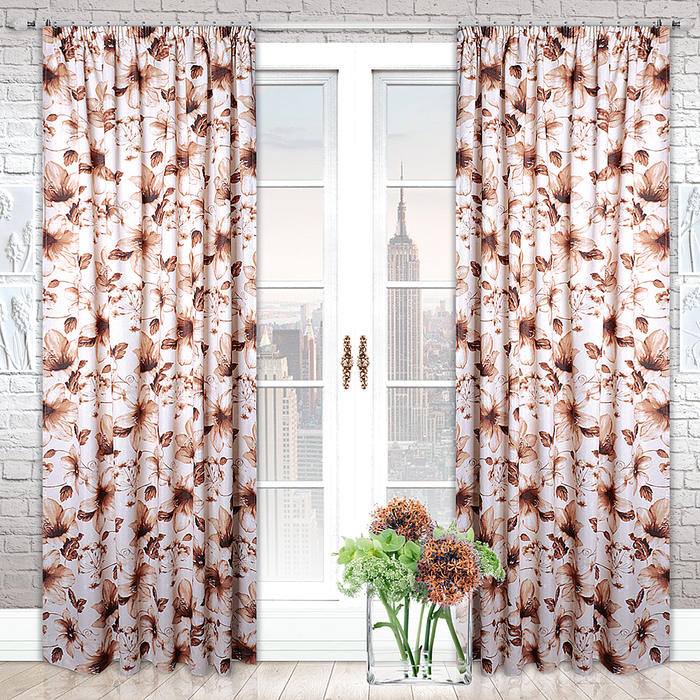 Шторы Люция изготавливаются из плотной хлопковой ткани с цветочным рисунком. Мы отшиваем данное изделие в коричневых и сиреневых оттенках.