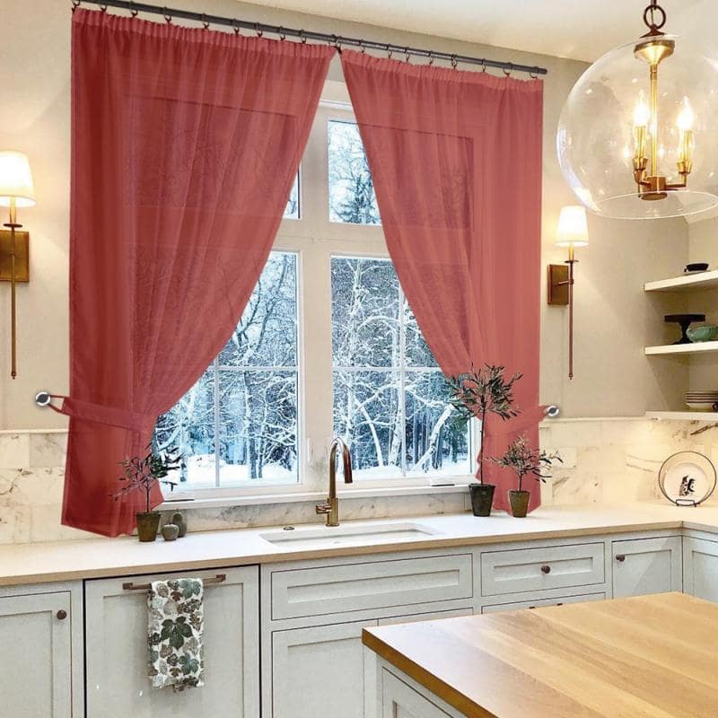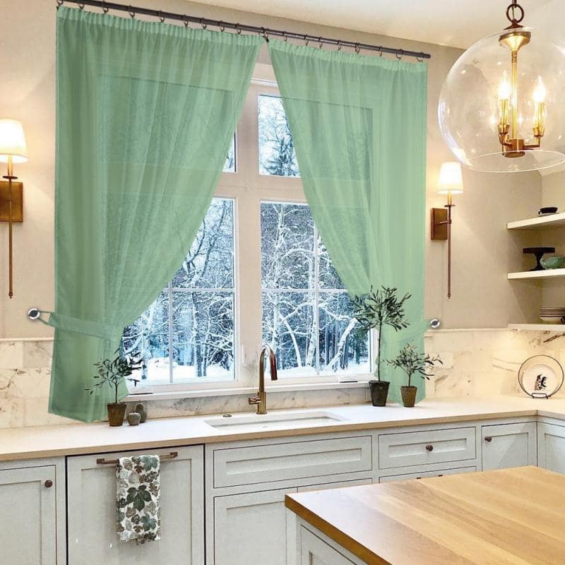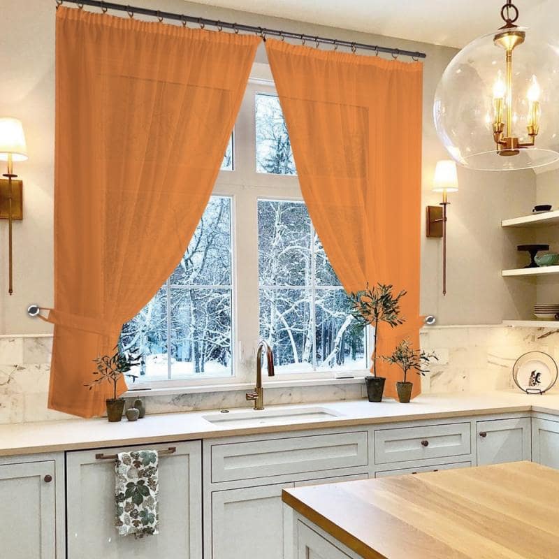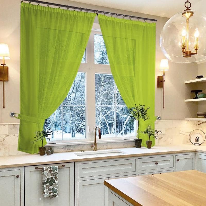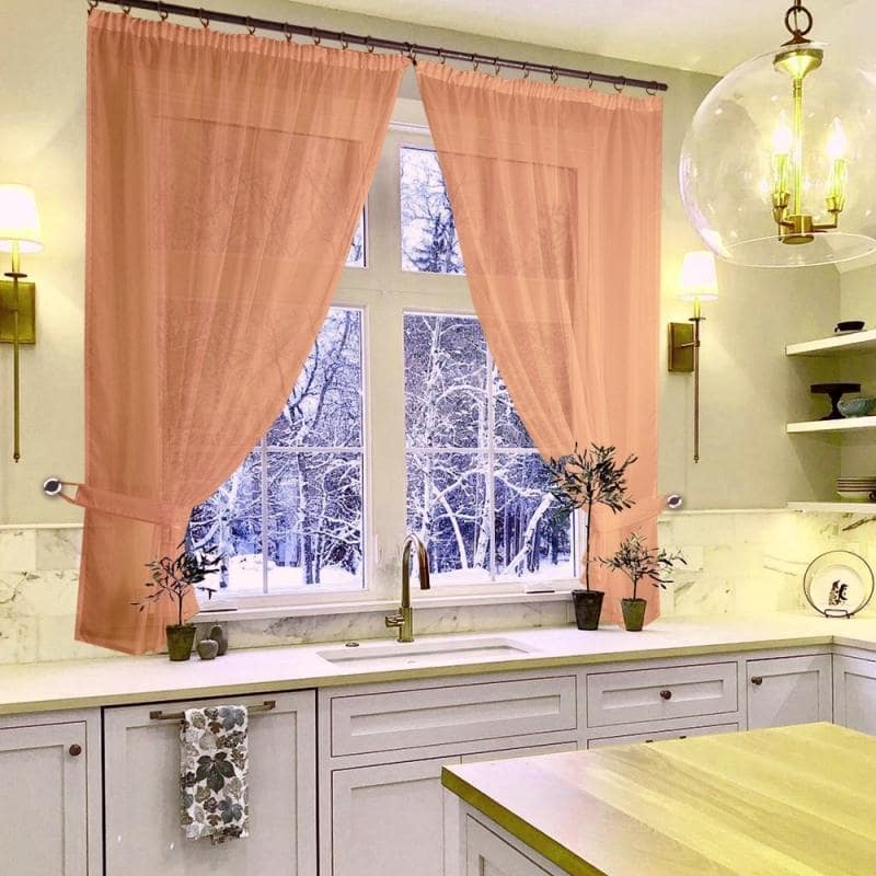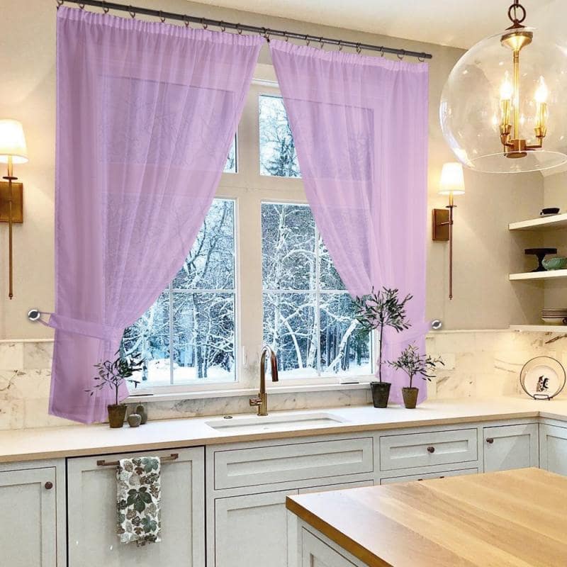 К верхней части штор пришита шторная лента с тесьмой, с её помощью вы сможете стянуть изделие до нужного вам размера карниза.С помощью данного комплекта можно красиво оформить окно в кухне, детской или в другой комнате, где нужен доступ к подоконнику.