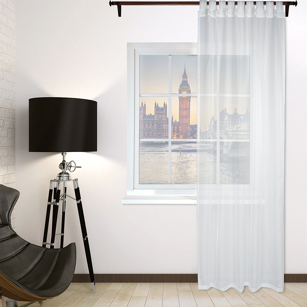 Размер: ширина — 150 см х высота полотна — 250 см (+10 см петли, всего — 260 см). Прозрачность 8 из 10.
