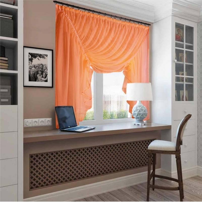 Шторы Рената — это однотонный комплект штор из вуали, по периметру пришивается бейка в цвет изделия.