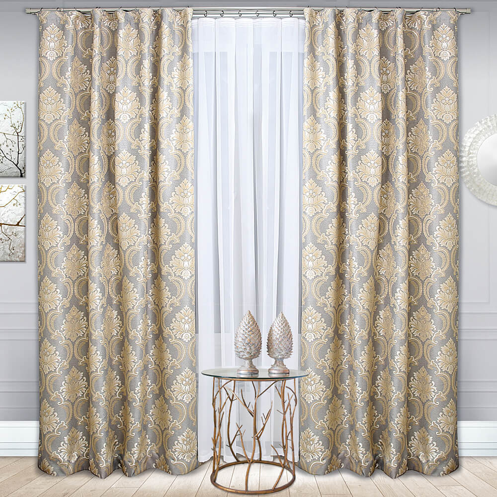 За основу ткани взят серый оттенок, который идеально комбинируется с золотыми рисунками в стиле «барокко». В солнечную погоду шторы Верона защитят ваше помещение от солнечных лучей и смогут нежно рассеять их по комнате.