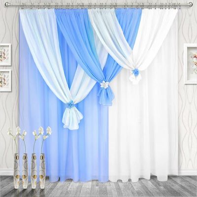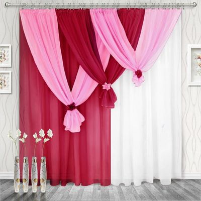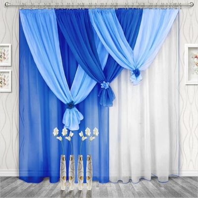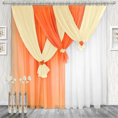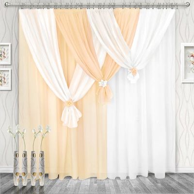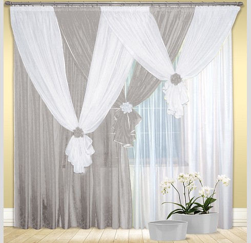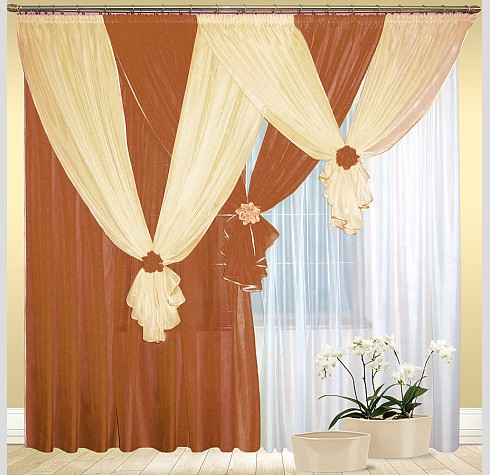 Ширина шторы — 280 см х высота — 250 (270) см — 2 шт, бантики каждой шторы (не сшитые вместе, можно вешать с любой стороны) — 3 шт. Ламбрекен регулируемый — 750 см.