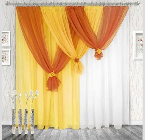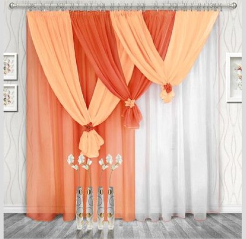 Шторы Весна — это простое и оригинальное изделие, верхнюю часть штор мы драпируем тесьмой, образовывая вертикальные складки по всему комплекту. Складки очень частые, что придает шторе Весна пышность и лёгкость.