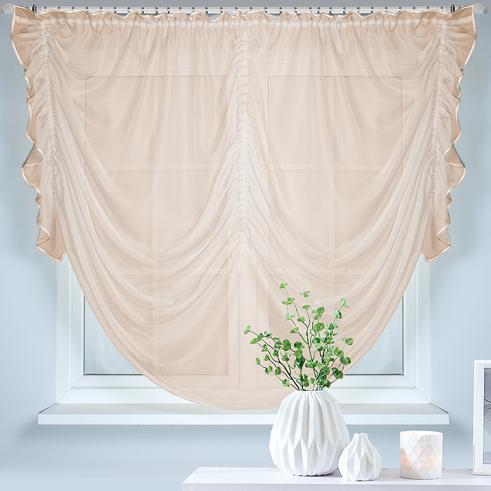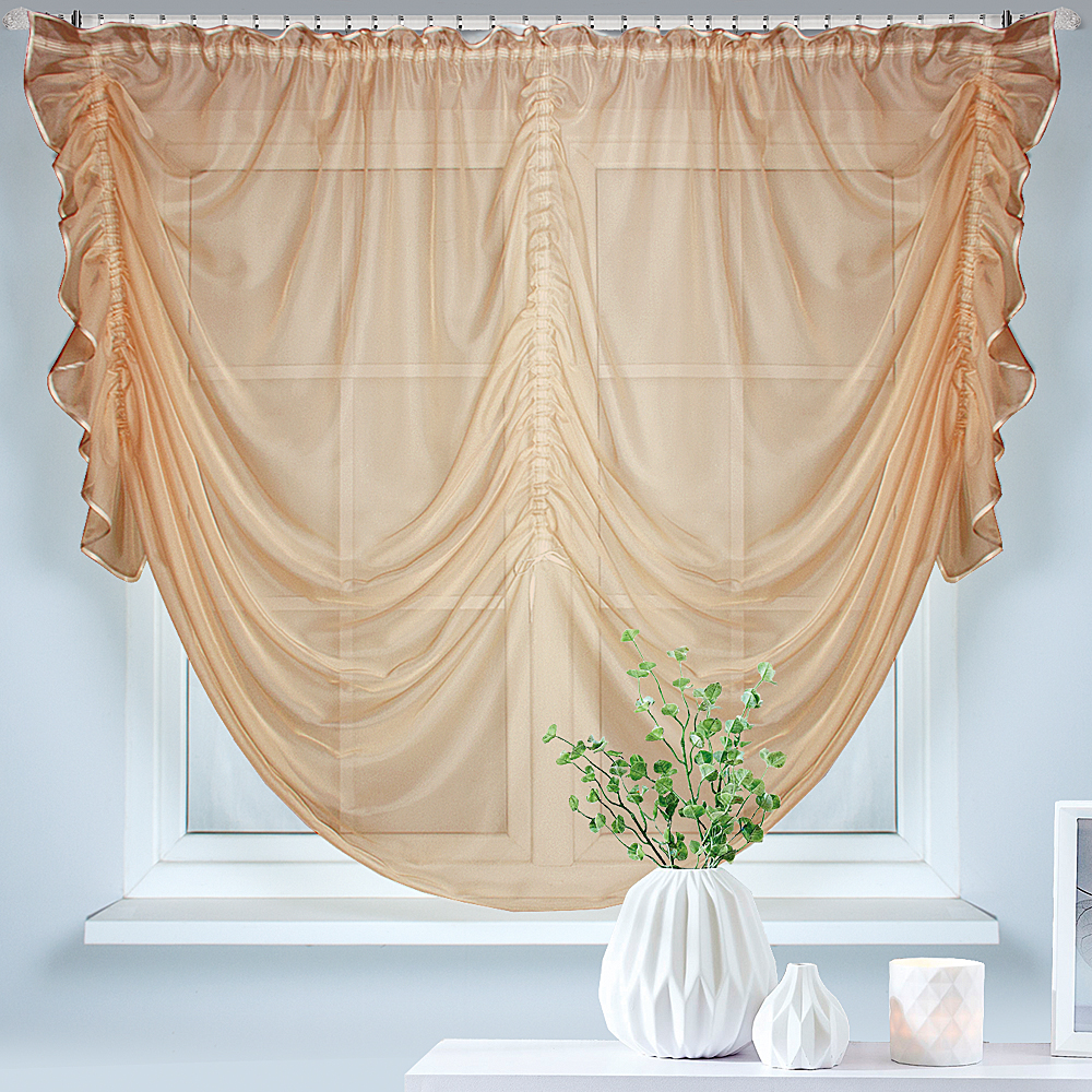 Шторы Юлианна — это классическая занавеска на шторной ленте, с её помощью вы сможете получить быстрый и беспрепятственный доступ к окну или подоконнику. По высоте штор пришиты дополнительные шторные ленты для регулировки изделия по высоте.
