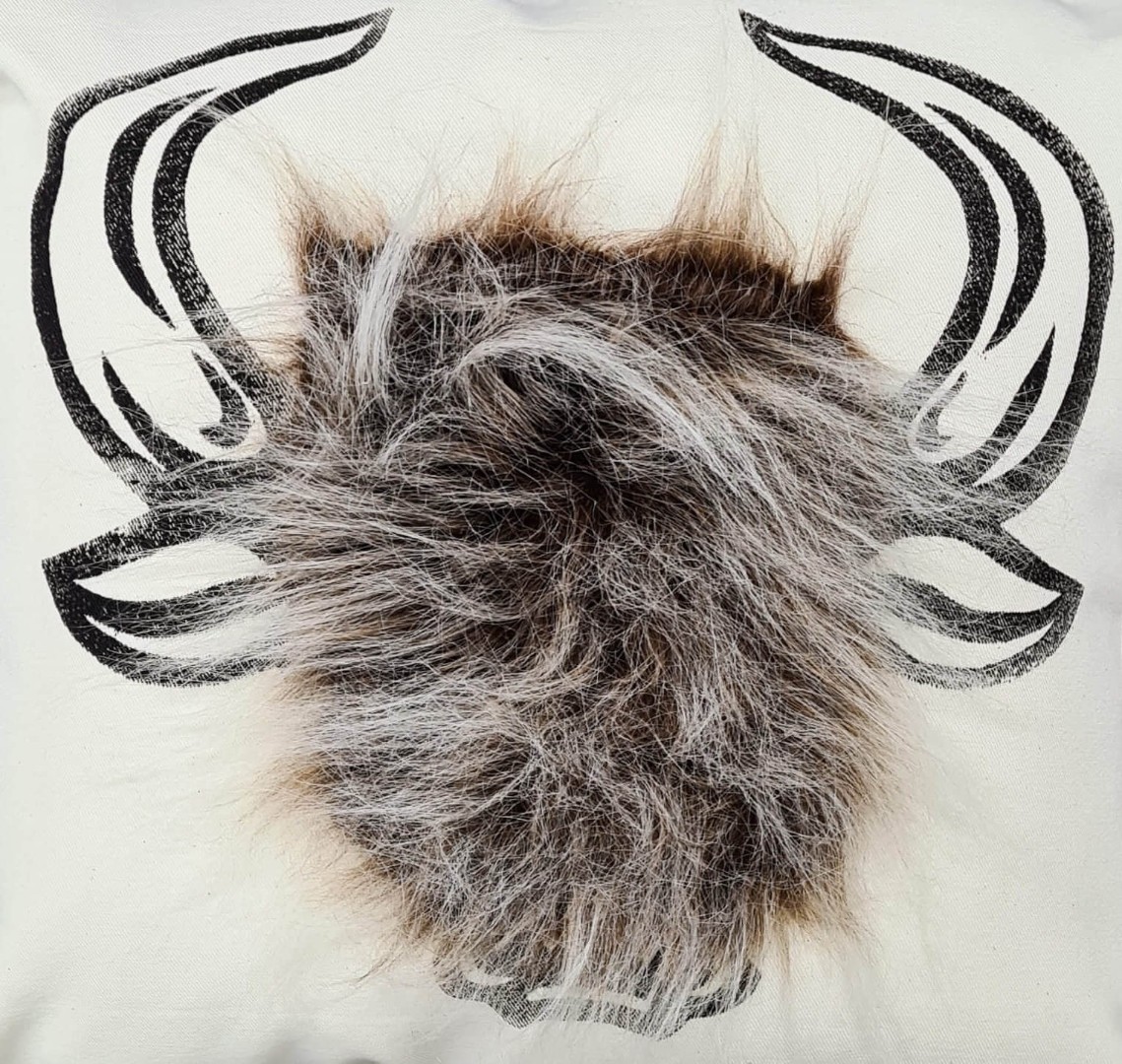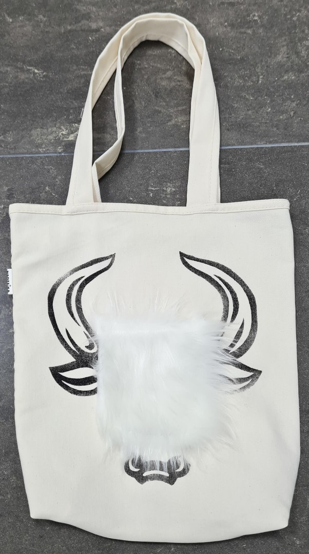 Сумка-шоппер Бык — это эксклюзивное изделие из ткани, с изображением быка, где используется мех в различных оттенках.