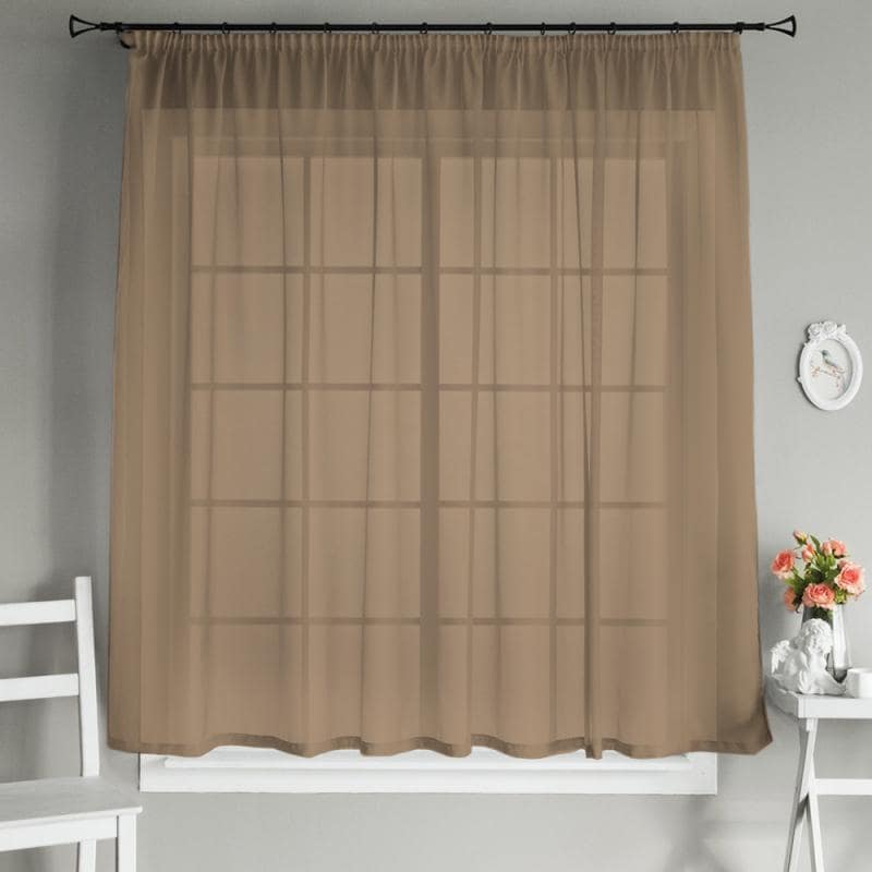 К верхней части тюля Лайма пришита шторная лента с тесьмой, с её помощью вы сможете стянуть изделие до нужного вам размера карниза.