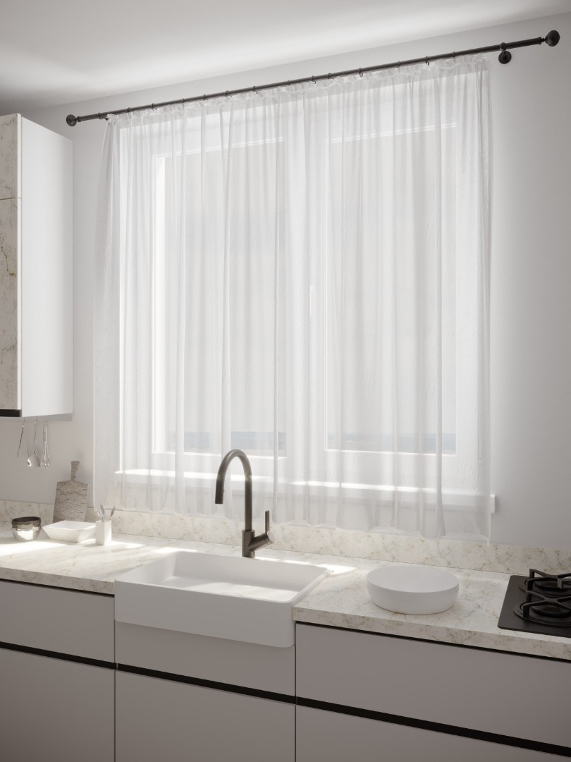 Тюль Лайма — это белая вуаль, к которой мы пришиваем бейку в цвет изделия, чтобы она гармонично завершала тюль. Эта модель отлично подойдёт как тюль к основным (боковым) шторам из нашего каталога.
