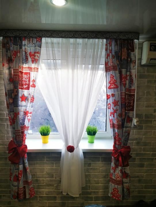 Очень красивая тюль на кухню.За прихватку отдельное спасибо!!!Будем заказывать еще
