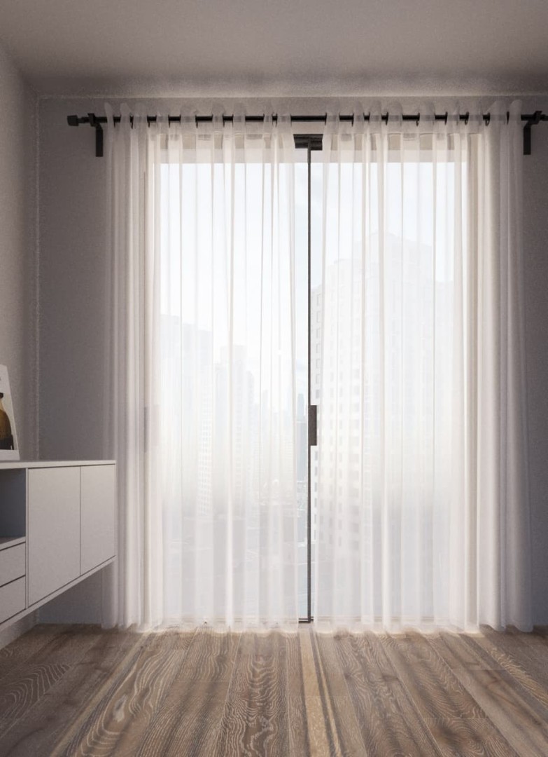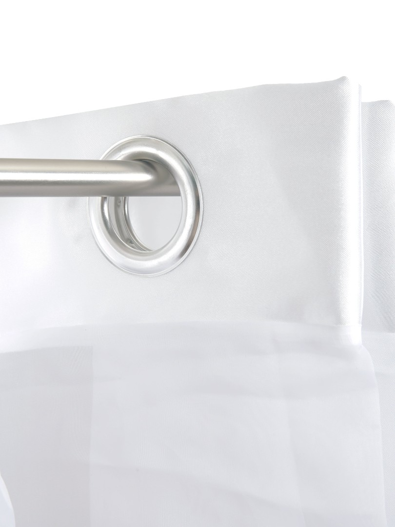 В верхней части тюль мы пробиваем люверсы (металлические кольца), тем самым вы сможете образовывать частые складки, которые будут нежно стремиться от верхней части карниза до пола, также к верхней части тюль мы дополнительно пришиваем уплотнительную ленту, чтобы люверсы не изнашивались под случайными нагрузками и крепление было надежно зафиксировано.